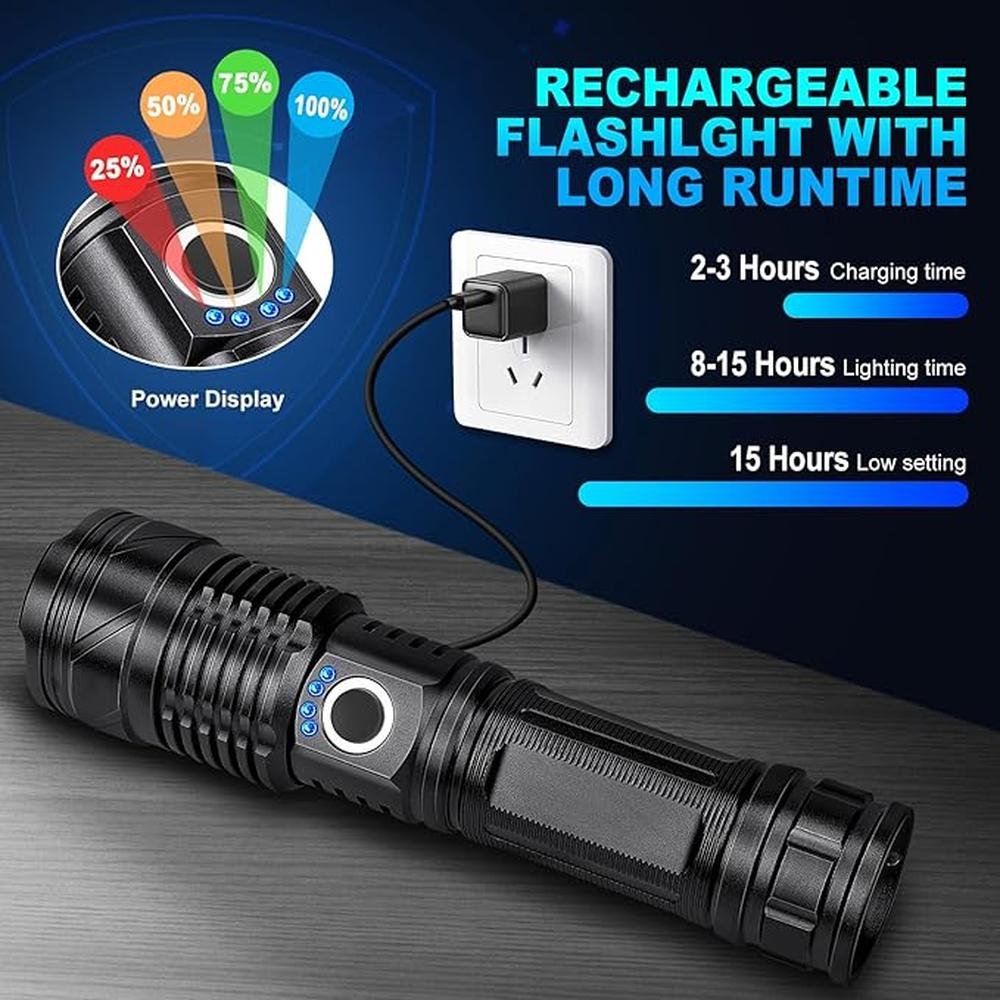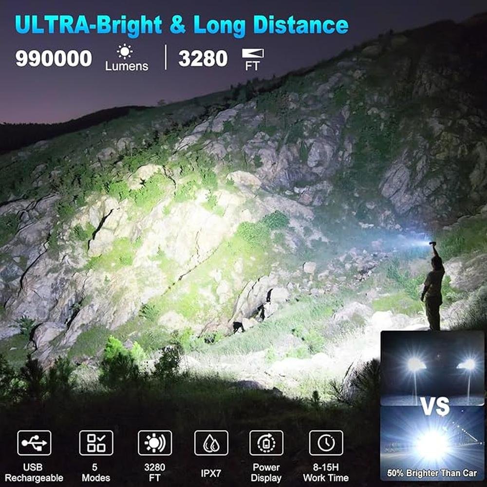 BERCOL Flashlights High Lumens Rechargeable, 990,000 Lumens Super Bright Led Flashlight with 5 Modes, IPX6 Waterproof Powerful Flash Light Multifunctional Flashlights for Home Emerge?cies Camping