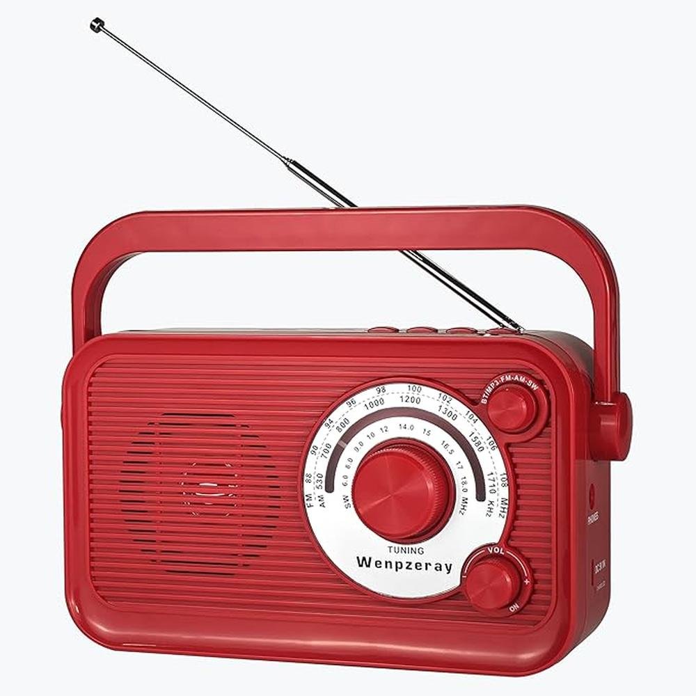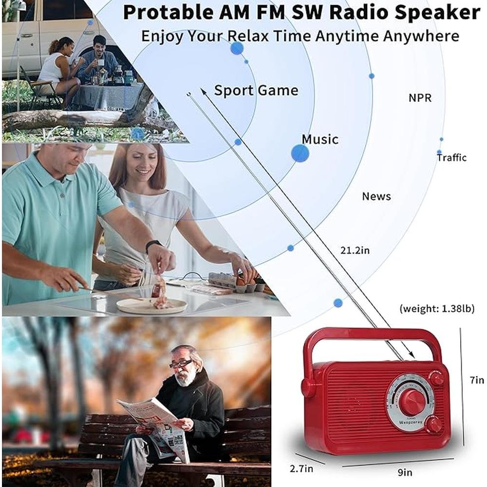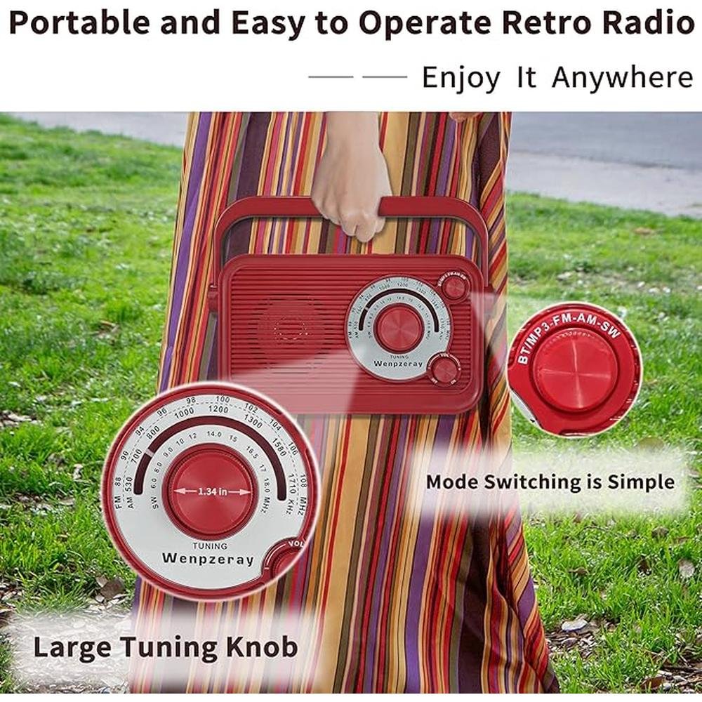 D218 Portable AM FM SW Retro Radio Receiver Clear Sound Bluetooth Speaker Battery Operated Good Reception with USB/TF Card Jack Earphone Jack Easy to Use for Home and Outdoor (Red)