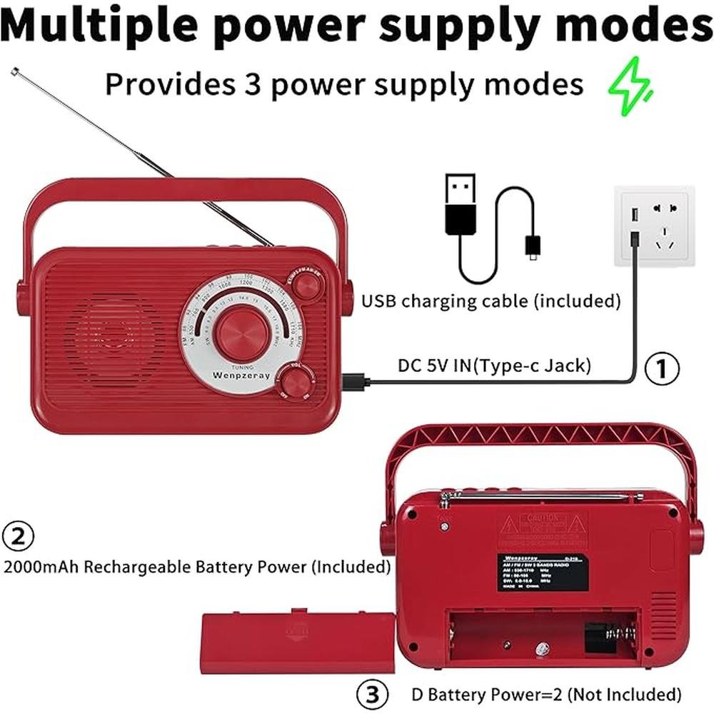 - Three Types Power Source ①Operated by USB cable for power(Include). ②Operated by rechargeable battery(Include). ③Operated by 2xD battery (Not Include). with three mode power, you can take the D-218 radio easy to use at home, kitchen, office and outdoor.