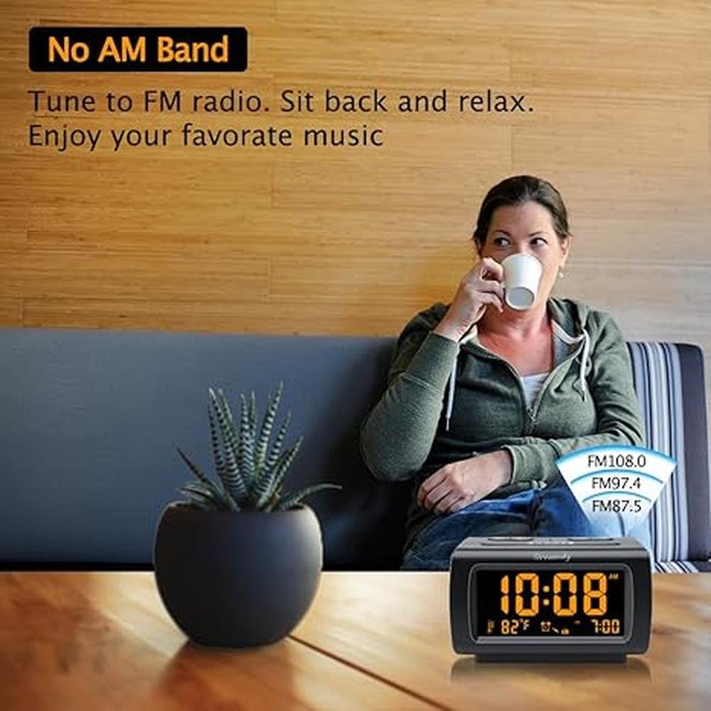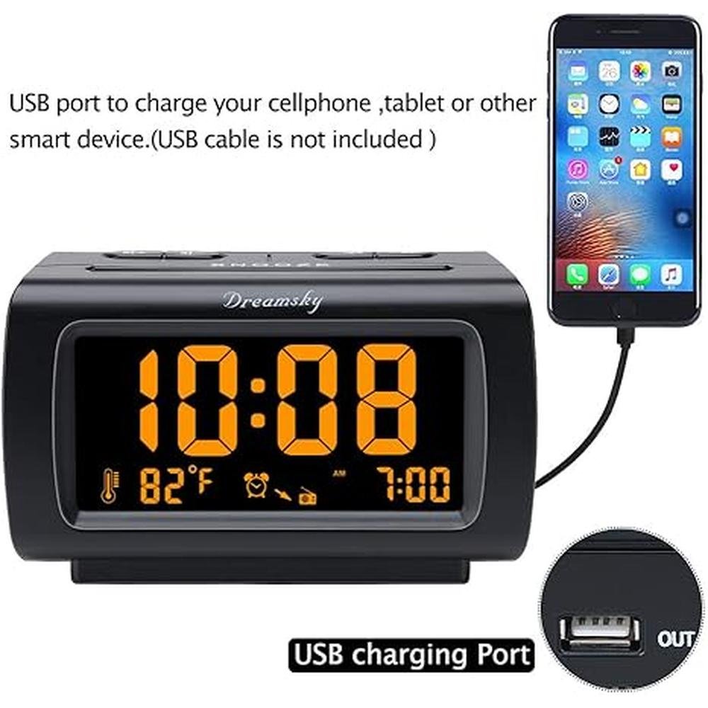 DreamSky Alarm Clock Radios for Bedrooms with Battery Backup, Large Big Numbers with Brightness Dimmer, USB Port, Bedside Digital FM Radio with Sleep Timer, Temperature, Adjustable Volume, Snooze