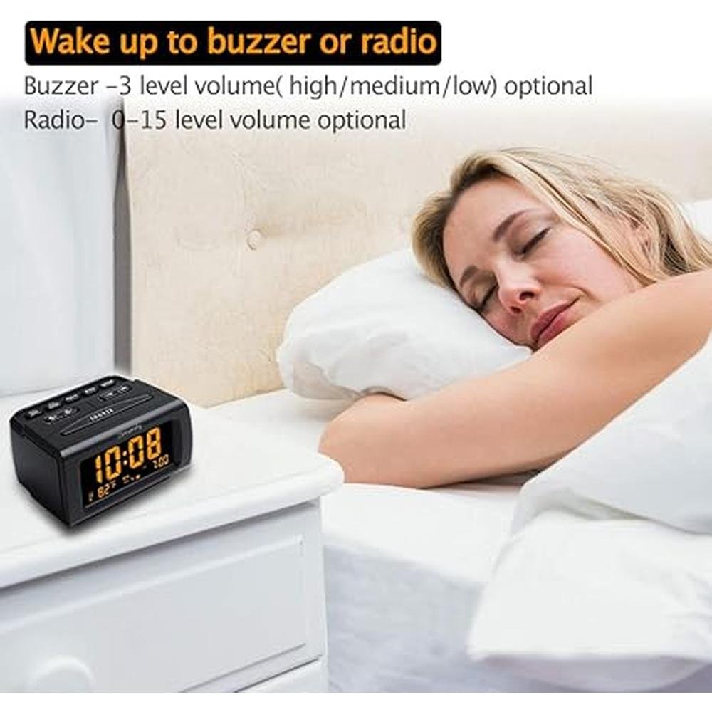 - Adjustable Alarm Sound and Snooze Wake up to buzzer or radio should your preference. Both alarm source volume can be adjusted to your comfortable level. (buzzer 3 level, radio 1-15 level). The alarm will begin sound faintly then increases to its max within 5 seconds. 8 minutes interval snooze can be repeated in one hour until turning off.