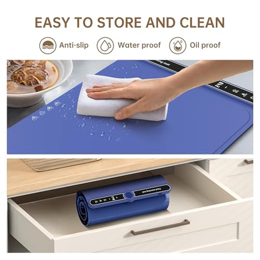 Electric Food Warming Mat, Roll-up Silicone Heating Pad, Fast Full Surface Electric Warming Tray with 9 Level Adjustable Temperature and 6 Hours Timer, for Parties Home Travel Countertop (Blue)