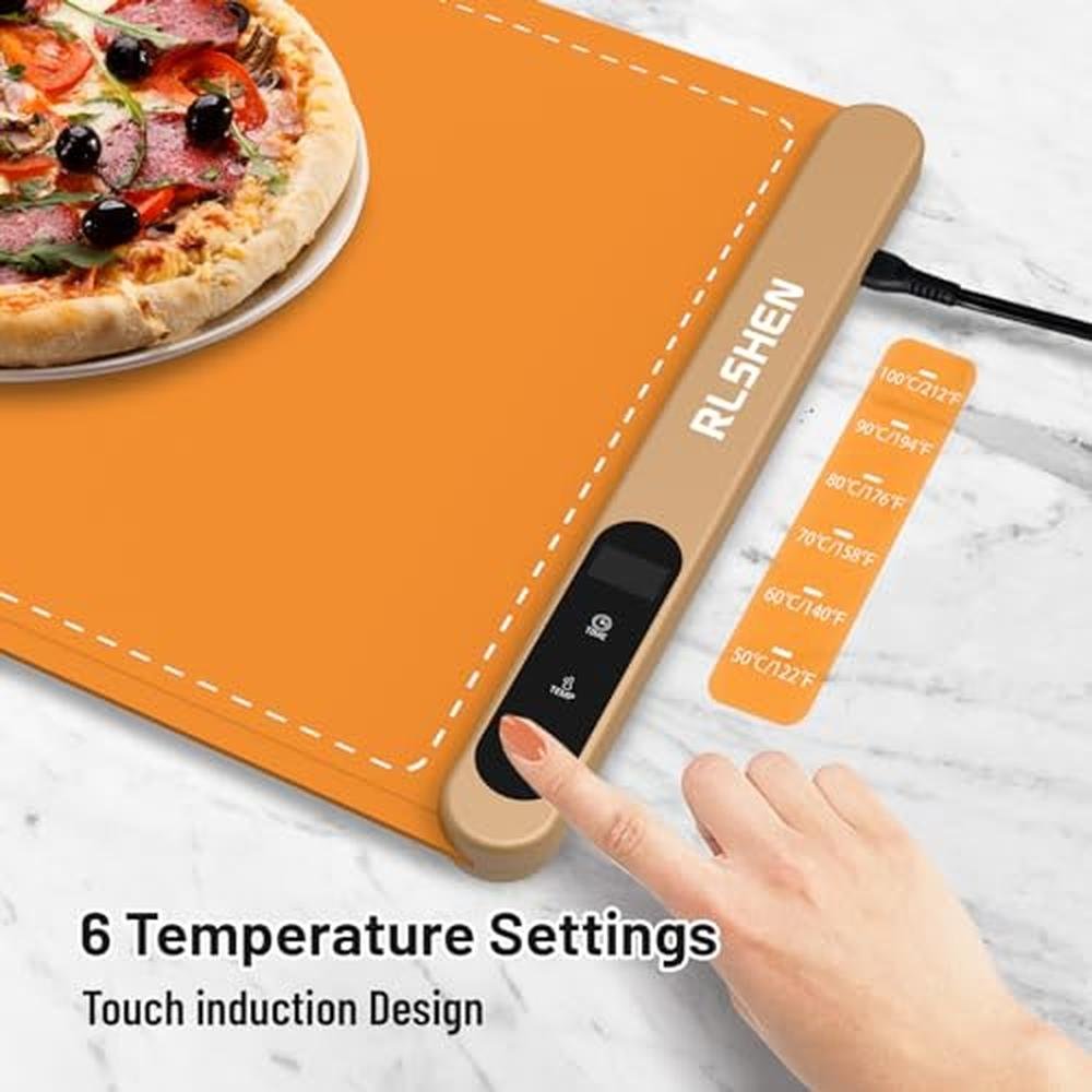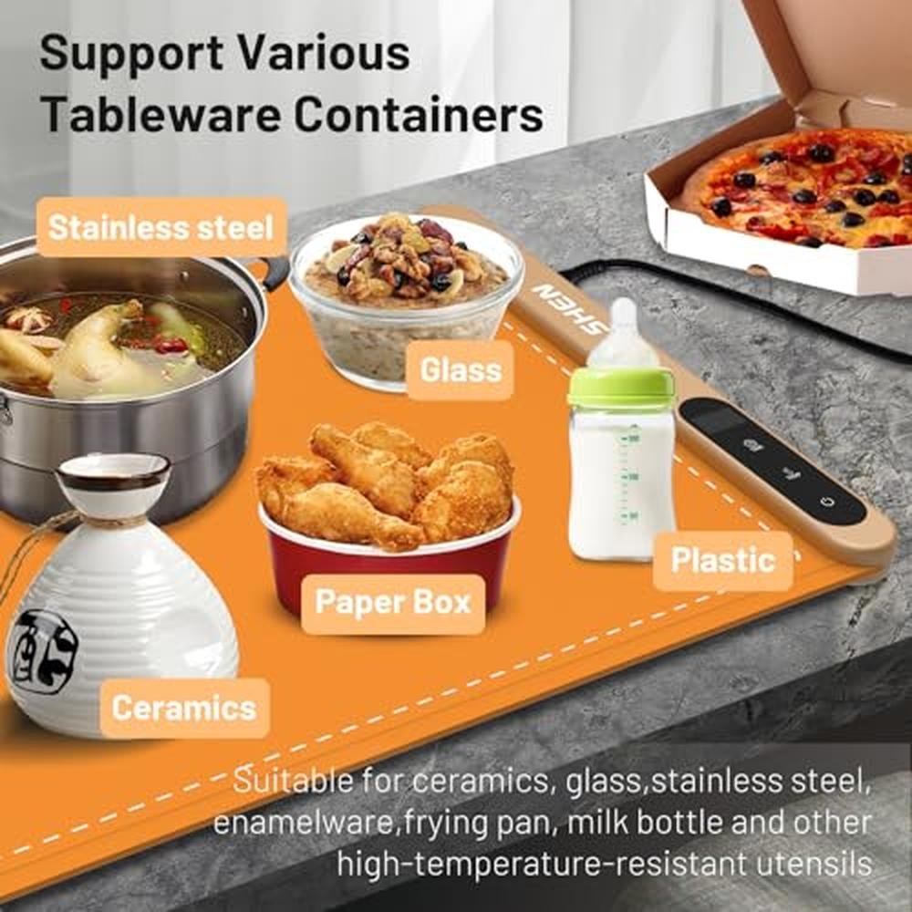 Electric Food Warming Mat with 6 Adjustable Temperature Control, Premium Silicone Nano-Material Foldable Quick Heating Plate, Food Warming Tray for Restaurants, buffets Party, Dinner (Orange)