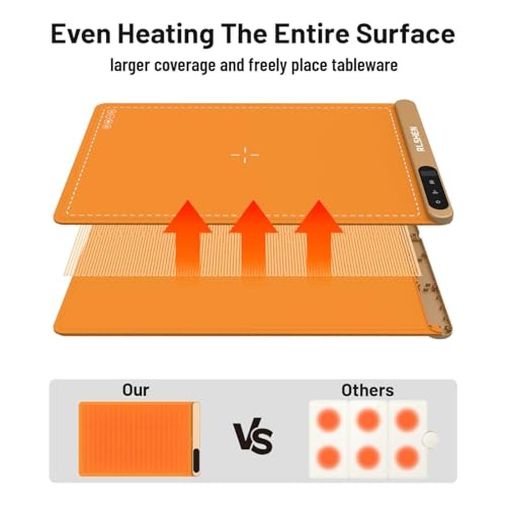 - Premium Silicone Nano Material: Crafted from top-tier flexible silicone nano environmentally friendly material. Our electric warming tray offers durability, splash-proof protection, stain resistance, and oil resistance. Fold and store without worrying about unsightly creases, ensuring lasting quality