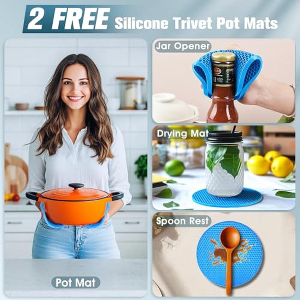 • Flexible 3 Tier Temperature Settings:Use the hot plates to keep food warm, which can effortlessly adjust the settings for optimal results. Ensuring that every bite remains as delightful as the first. Our food warmer mat with 2 silicone trivet mats. Heat resistant safe for use in the oven, freezer, trivet, jar opener, spoon rest or anywhere you need extra grip or exteme heat. Hope this additional can enhance your happiness in life
