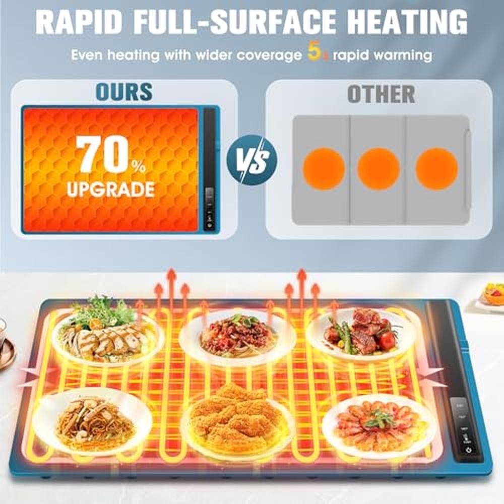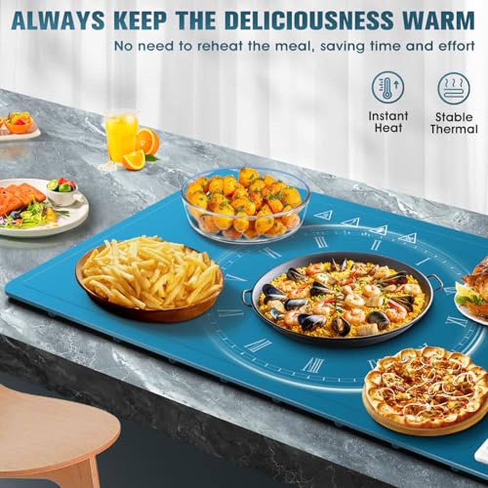• Versatile Food Warmers for Parties Buffet:Our silicone food warmer mat is essential for every kitchen. It keeps dishes warm, defrosts frozen foods, and ferments dough. Absolutely a reliable addition to your home. this electric warming tray designed to complement an array of tableware materials, including metal, ceramic, glass and enamel, our food warmers for parties buffet enhance versatility and convenience, adapting seamlessly to your dining preferences