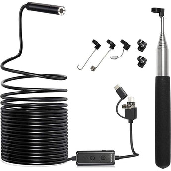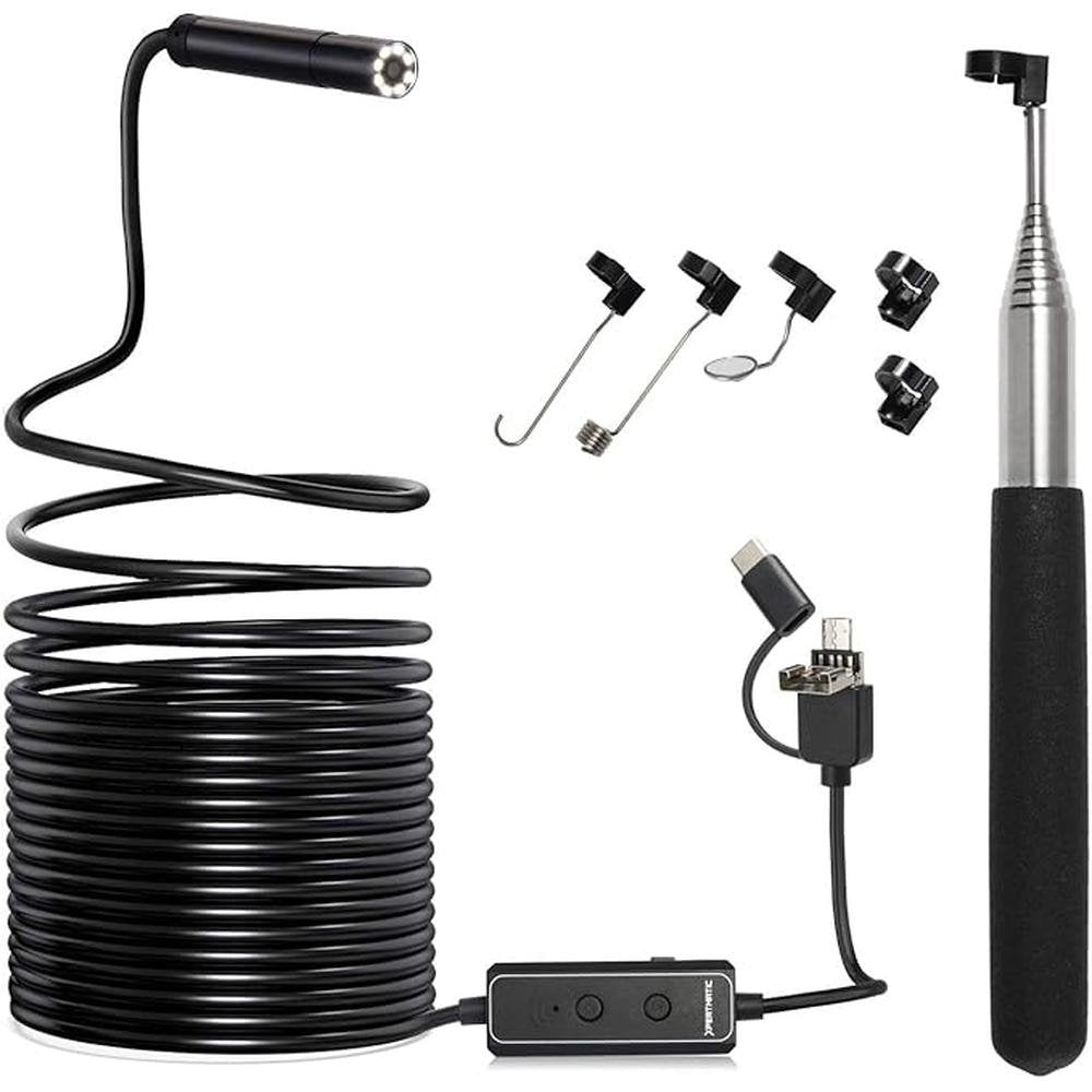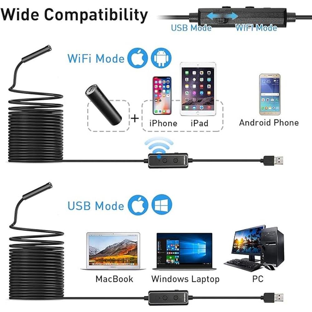 F160 USB and WiFi 2.0 MP HD Endoscope, 16.4FT Large Focal Range Borescope Drain Camera for iPhone, Android Phone, PC, MacBook - 16.4FT Semi-Rigid with 8 Adjustable LED Lights