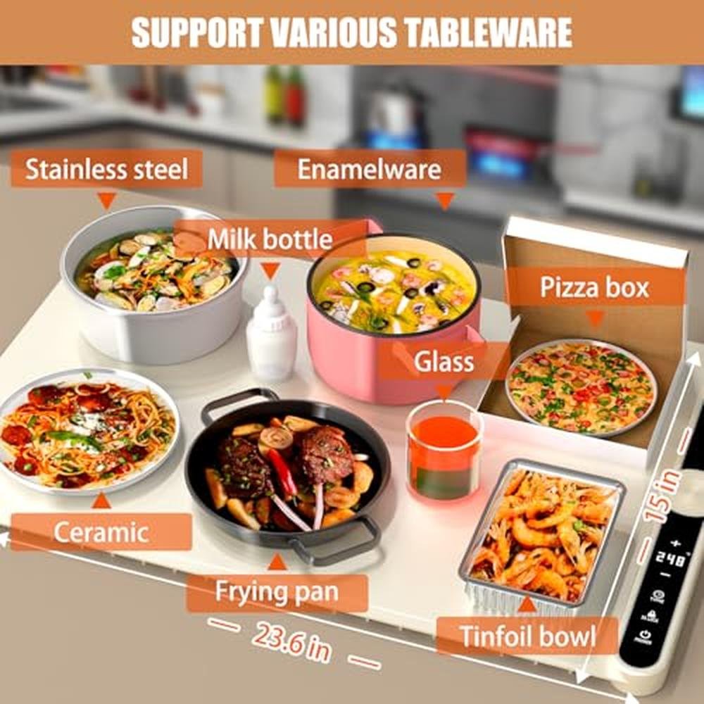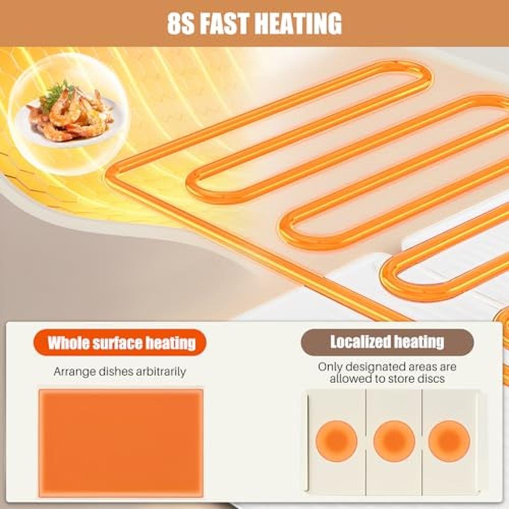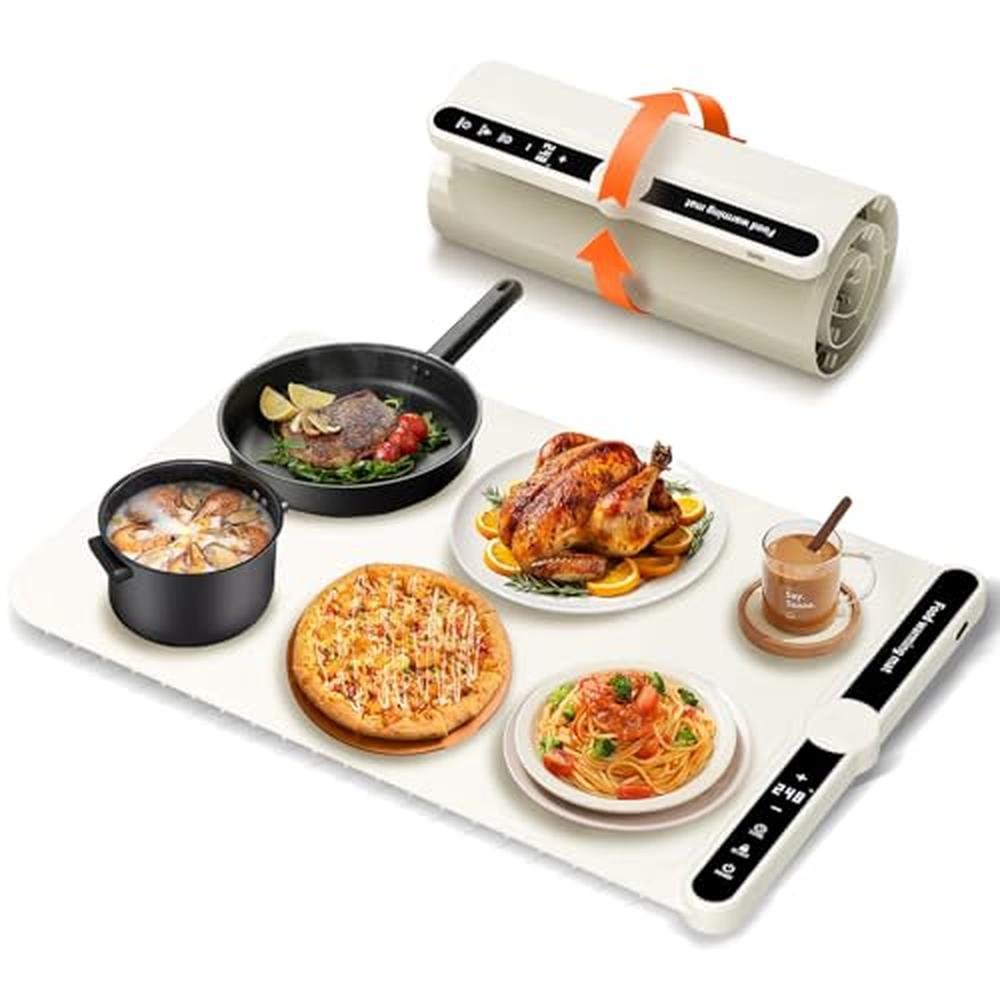 - 8 s Rapid Full-Surface HeatingOur food warming mat heats up quickly, with heating wires running through the entire mat which heats up in 8 seconds. Ensure that food stays warm and ready to serve. The warming roll has full surface heating, not just a few different zones. It's large enough to place multiple dishes on it.