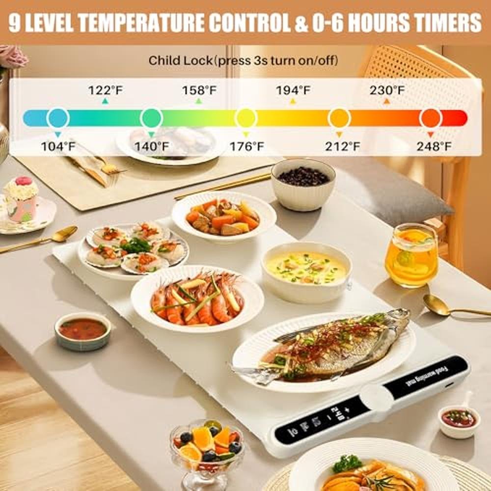 Food Warming Mat, 24x15 Inches Electric Warming Mat with 9 Level Temperature Settings, Child Lock & Auto Shut-Off, Foldable Roll Up Food Warmer Mat for Gatherings,Parties, Buffets, Daily Use