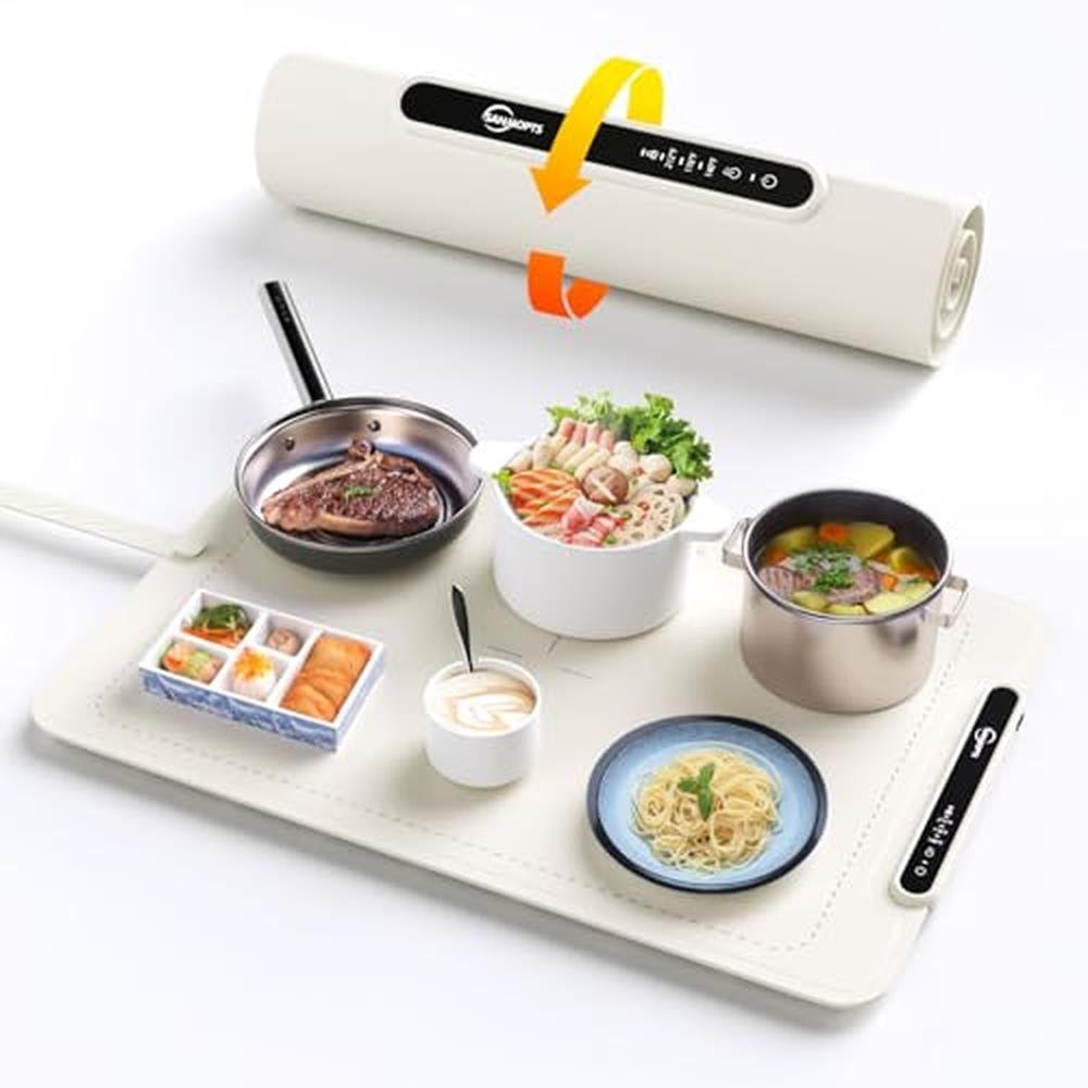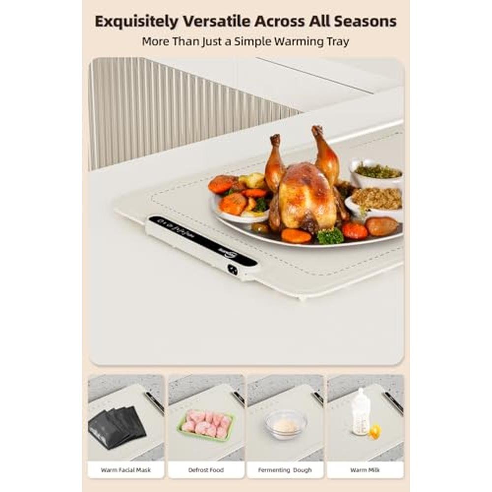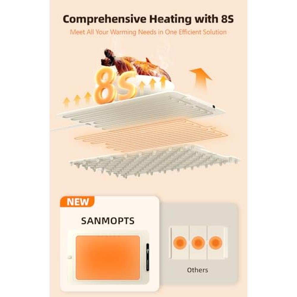 - Quick and Efficient HeatingExperience the future of kitchen convenience with our electric warming tray, engineered with an advanced heating wire that covers the entire bottom for uniform heat distribution. Forget waitingyour food heats up in just 8 seconds, eliminating cold spots for perfectly warmed meals. The full-surface heating ensures food is heated evenly, maintaining a constant temperature across all your dishes, except for the carefully designed anti-scald edges. Accommodates various dish sizes for efficient space use, making it a kitchen must-have.