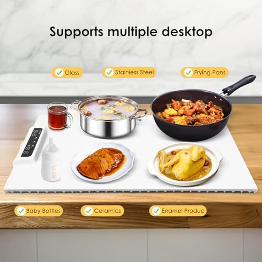 Here are some usage scenarios: In a family dinner, you can use it to keep the cooked dishes warm.The adjustable temperature mode allows you to maintain the optimal temperature, ensuring that everyone can enjoy the food at its best. For breakfast, it can be used to heat up milk or keep pancakes warm. The soft and heat-resistant silicone surface holds the containers well and distributes heat evenly, making it a great addition to your morning routine. If you are having a picnic or outdoor gathering, you can bring this portable and foldable device. It can keep the food warm for a long time, allowing you and your friends to enjoy hot and delicious food even outdoors. When using different types of tableware like metal trays, ceramic bowls or glass dishes, it works well with all of them. This makes it suitable for various dining occasions and table settings, whether it's a formal dinner or a casual meal. Food Warmer Mat, Adjustable Food Warmer, Silicone Electric Heating Tray for Food - Full Surface Heating, Silicone Heating Tray Roll Up, 3 Temperatures, Auto Shut Off (1Set)