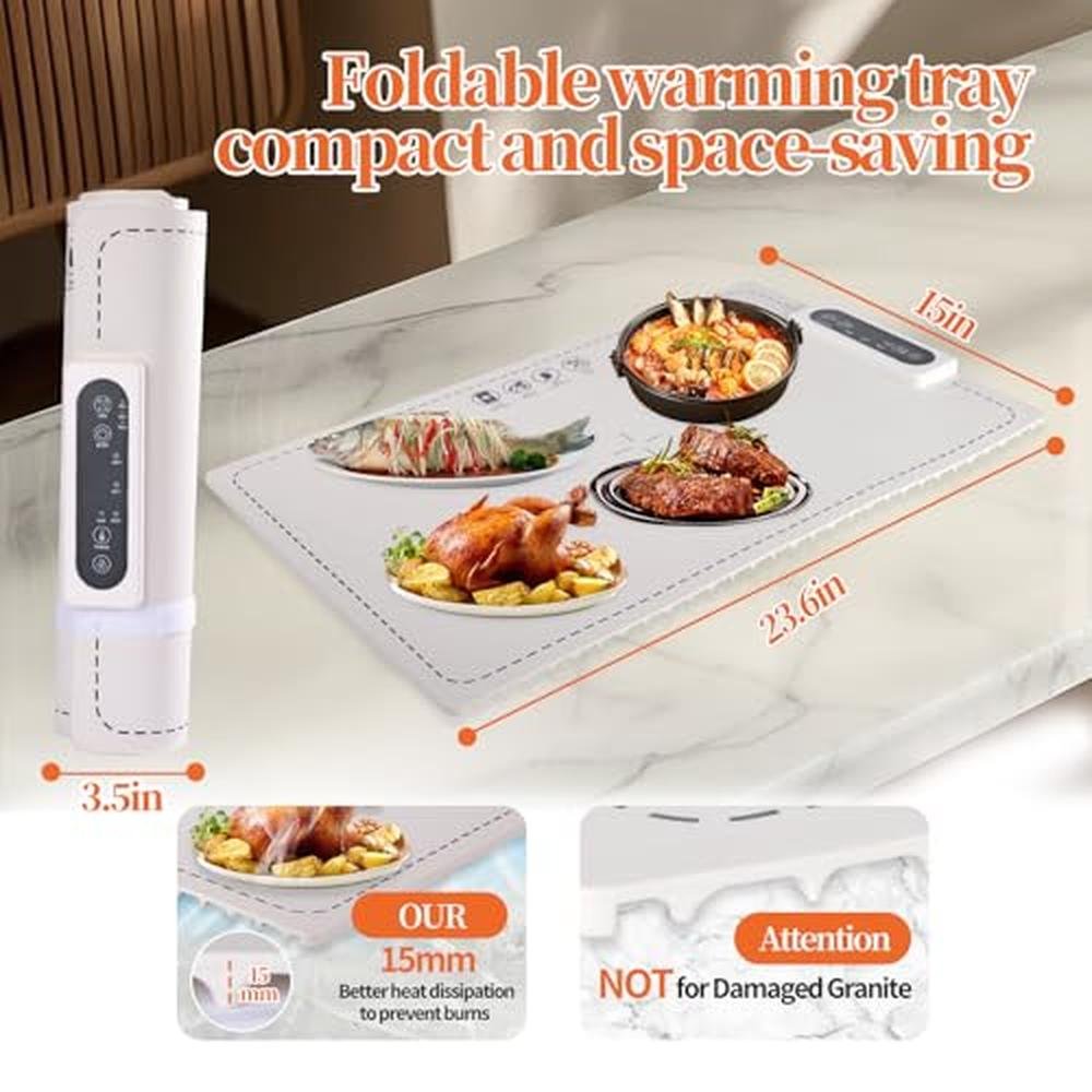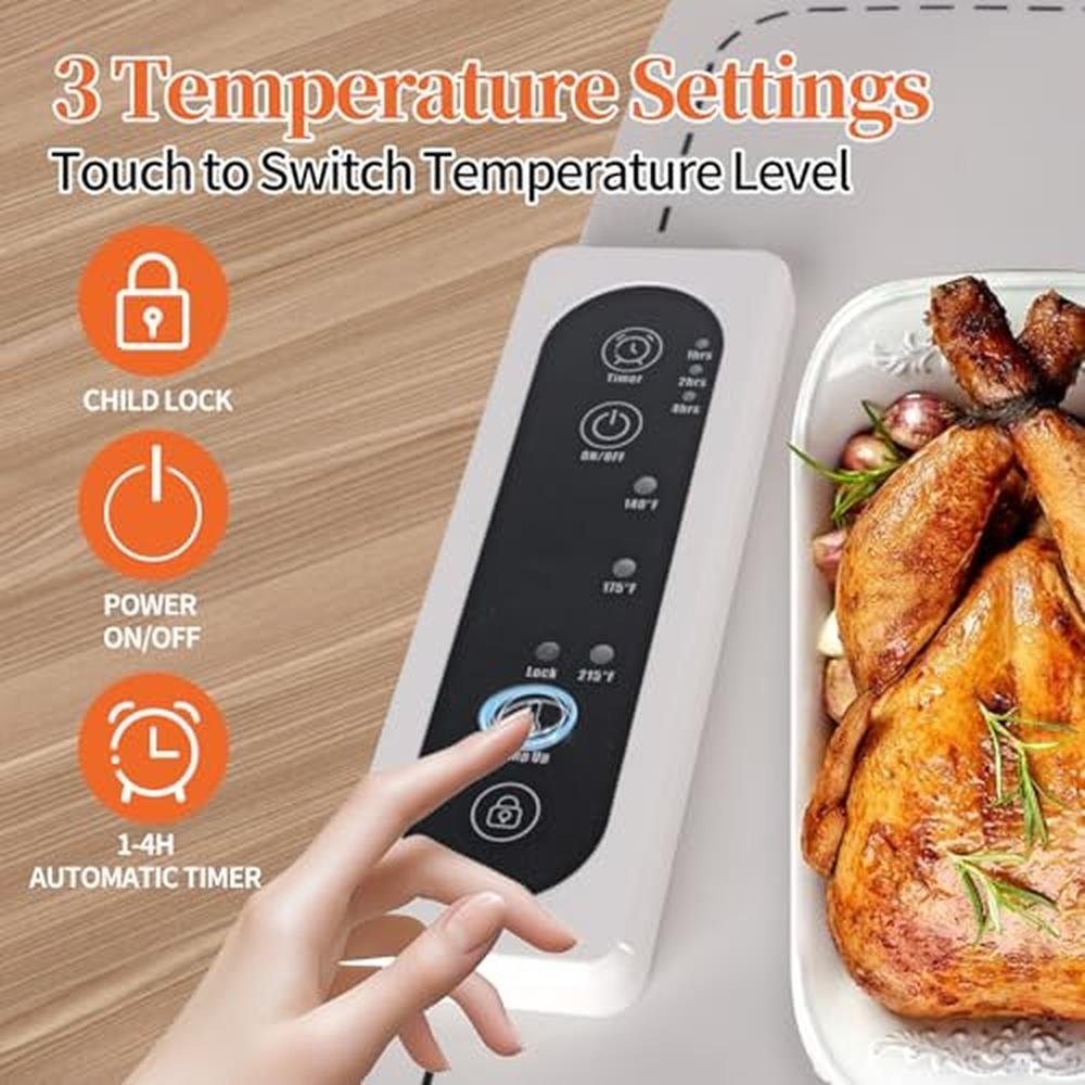 Food Warming Mat, Fast Heating Silicone Food Warming Mat in 10 Seconds, Easy to Carry, with Child Lock, Timed Off Time, for Buffets, Family Gatherings, Shabbat, Holidays, Countertops