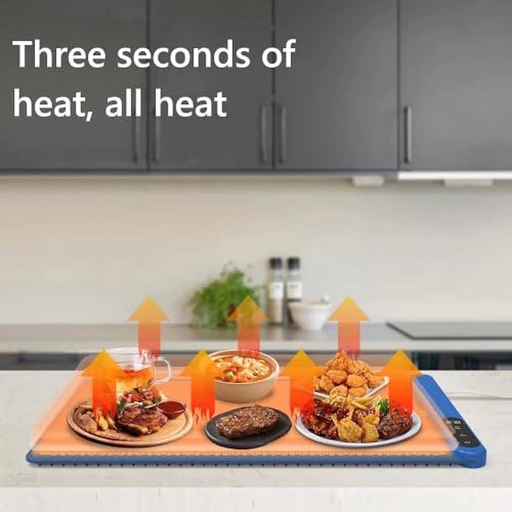 - Full-Surface Heating: This electric warming tray provides even heat distribution across the entire surface for consistent temperature control. The silicone heating tray measures 14.96 x 23.62 x 0.78 inches, and it can heat 4-6 dishes simultaneously when spread out