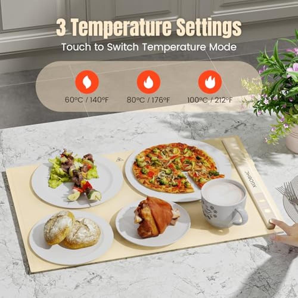 Food Warming Mat for Buffet - XGOBHC Fast Heating Silicone Electric Warming Tray with 3 Level Temperature, Roll Up Food Warmer Pad for Parties Buffets and Home Use, Auto Shut-Off, Beige