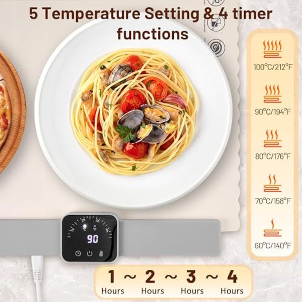 - Adjustable 5-Level Temperature Control & Timing function: Enjoy the convenience of precise temperature adjustment to keep food warmer and fast heating for timing a long time; 5-level temperature can adjust your food at the perfect temperature, enhancing your dining experience