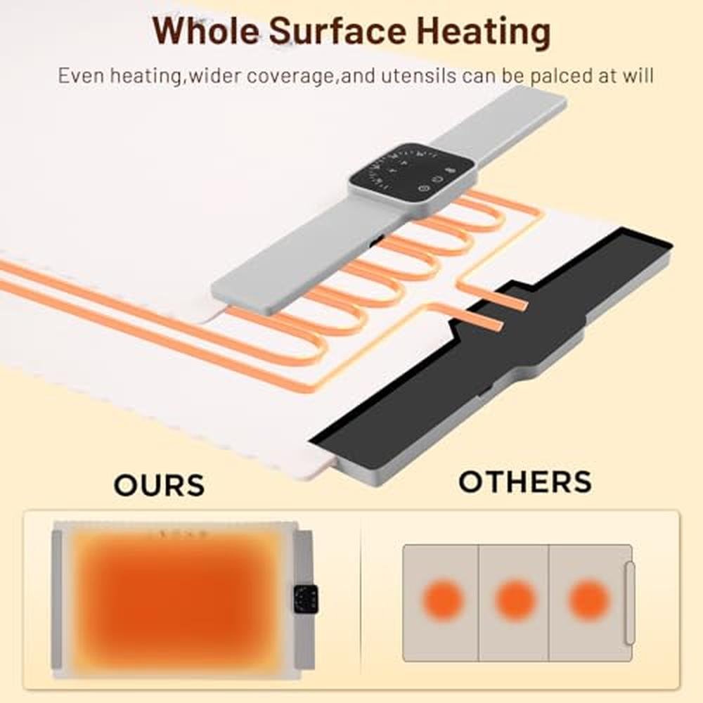 - Rapid Full-Surface Heating: Experience rapid and uniform warming across full surface heating area; Electric warming tray designed heating wire ensures quick and even distribution, freely to put your tableware as you like