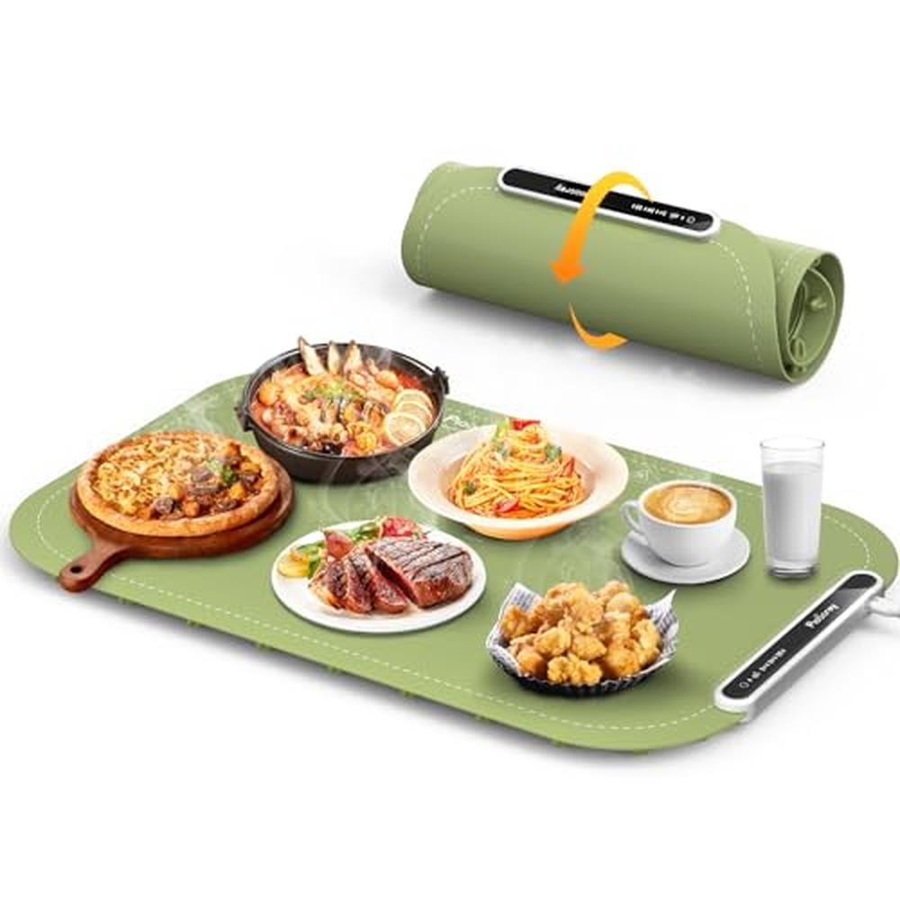 Warming Tray Electric Warming Tray with Adjustable Temperature for food warming trays for buffets party warming mat for food miller market warming mat Foldable Food Warmer for Parties Features 3 Modes.It heats up really damn quick. The foldable heating mat for food is a must-have for every kitchen. Keep your dishes warm for daily meals, ferment dough, thaw frozen foods, and maintain the perfect temperature for family dinners, gatherings, events, Ramadan, and Shabbat celebrations. This heating pad is a well made electric warming tray. The tray features adjustable temperature, and has a unique space saving design,and is cleverly designed as a foldable food warmer.Green Color make you more be happy to used it.Looks more environmentally friendly and healthy! We believe in enhancing your culinary experiences through thoughtful design and advanced technology. Our warming tray is more than a kitchen appliance; it's a testament to our commitment to quality and convenience. With each use, you'll discover the perfect blend of functionality and style, adding a touch of warmth to every meal. Choose us and make every gathering a heartwarming celebration.