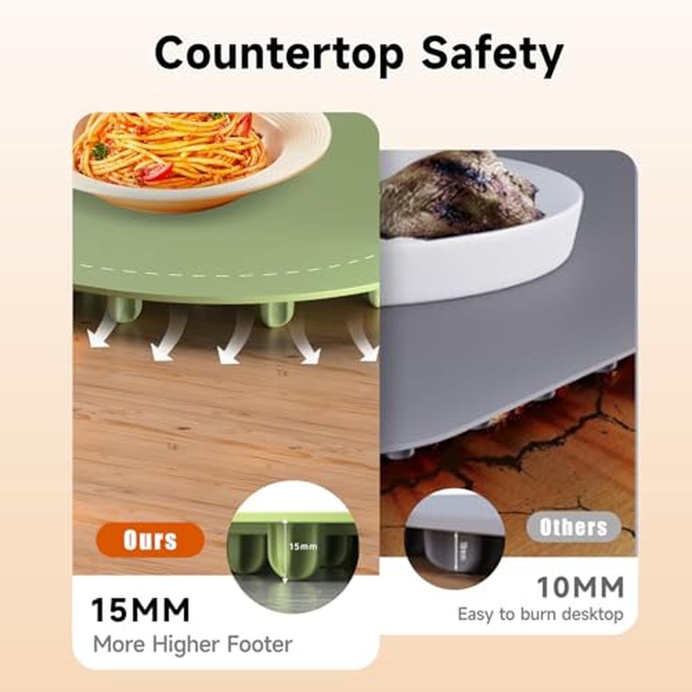 - Multiple Security Protections Warming MatThe electric warming tray has a 15mm raised bottom column, which ensures that it won't harm the table during the heating process, and the heat dissipation effect is also more powerful. The silicone non-slip base prevents the plate from accidentally sliding or tipping. Anti-scald design on the edge of the food warmer mat protects curious little hands. Don't worry about forgetting to turn off the warming mat after the meal, the two-hour no-operation shutdown function can provide double safety guarantee.