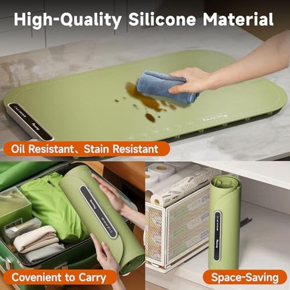 - High-Quality Silicone Material and Roll-Able DesignOur silicone warming mat for food is made from a flexible food-grade silicone material that is durable, waterproof, stain-resistant, oil-resistant and easy to clean, ensuring excellent performance over long periods of use. The roll-up design makes it store easily and greatly reduces the storage area occupied by the portable food warmer, and is also conveniet to carry, which is the first choice for picnic.