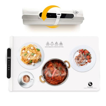 ALSOBEC Electric Food Warming Mat Keep Your Meals Warm & Ready to Serve! Enjoy perfectly warm meals with the ALSOBEC Electric Warming Mat, designed to maintain your food at the ideal temperature for extended periods. Whether you're hosting a family dinner, buffet, or office lunch, this portable food warmer ensures your dishes stay warm and fresh. Key Features: 8 Adjustable Temperature Levels (50-100C) Customize the heat settings to keep your food at the perfect temperature. Smart Auto Shut-Off Choose between 1, 2, or 3-hour automatic shut-off for safety and convenience. Fast & Even Heating Advanced graphene film technology with double NTC temperature control ensures consistent heat distribution. Spacious & Portable Design With a 65x38cm surface, it accommodates multiple dishes while remaining lightweight (1.3kg) and rollable for easy storage. Safe & User-Friendly A 2cm safety border prevents accidental burns, and the simple control panel makes operation effortless. Works with Various Cookware Compatible with glass, stainless steel, ceramic, and more, making it perfect for warming plates, serving trays, and cookware. Ideal for Any Occasion Great for buffets, family gatherings, holiday feasts, office lunches, and meal prep. How to Use: Place the warming mat on a flat surface. Plug it in and select the desired temperature. Place your food or cookware on the mat. Enjoy consistent warmth, then roll it up for easy storage. Keep your food warm, fresh, and ready to serve anytime, anywhere! Get your ALSOBEC Electric Warming Mat today!