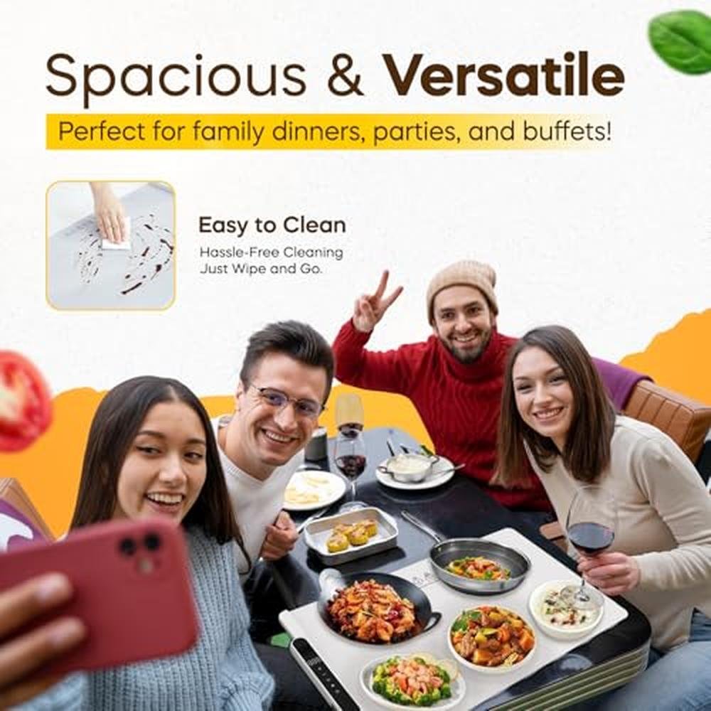 - Auto Shut-Off & Heat Protection: Our food warming mat is designed with a 2cm safety border, free of heating components, to prevent accidental burns from direct contact. Plus, for added protection, the electric warming tray features an adjustable auto shut-off function, allowing you to set it for 1, 2, or 3 hours of continuous use. This ensures safety for you and your family while keeping your food warm.
