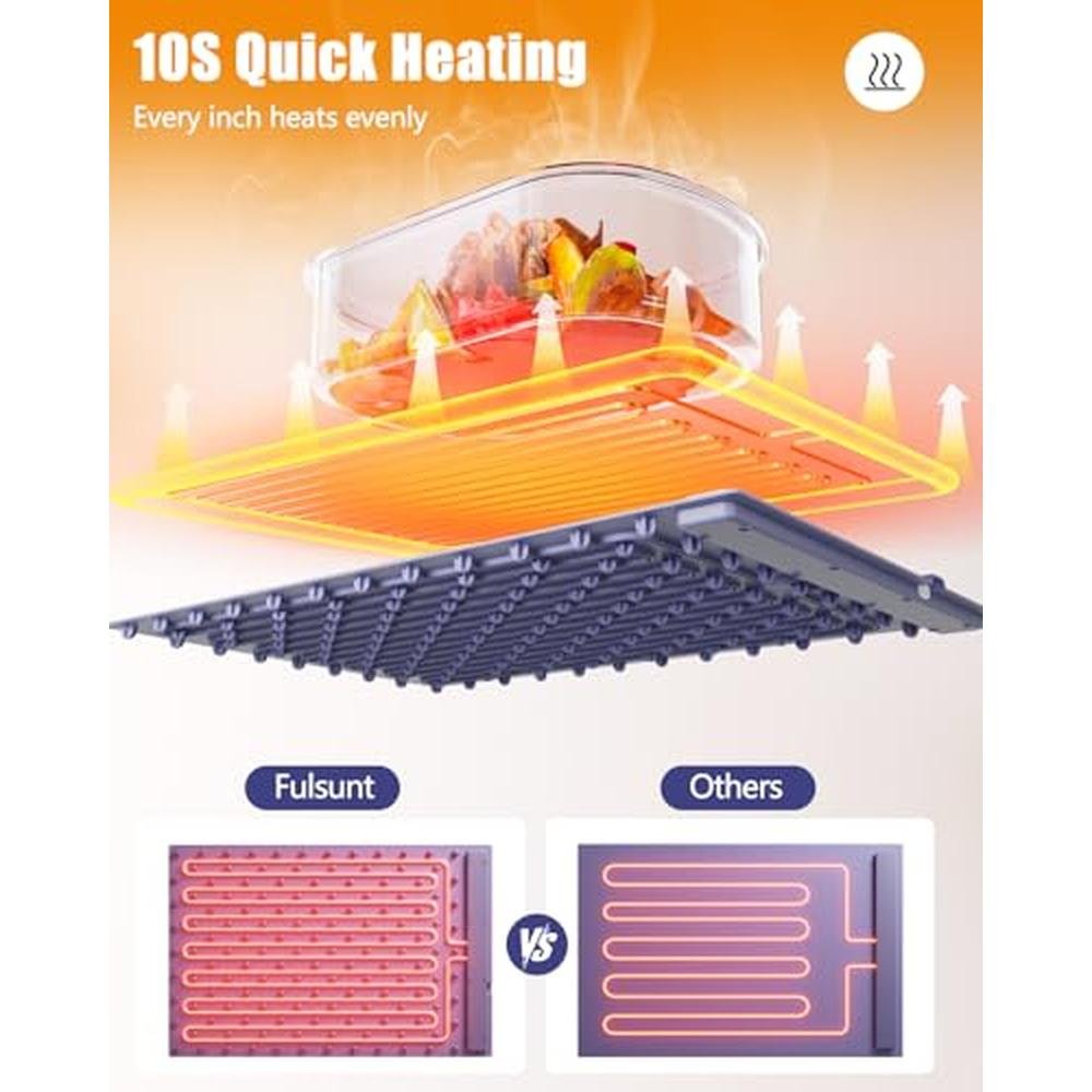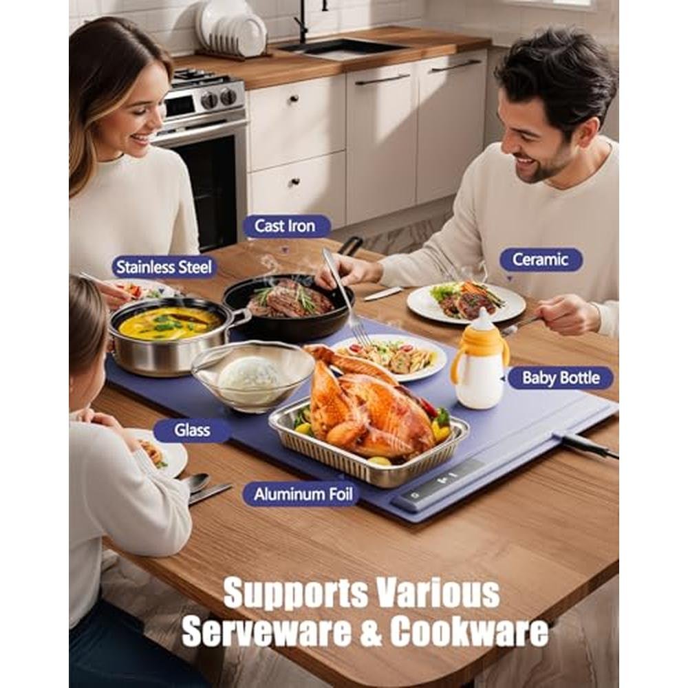- 10S Quick Heating & Complete Heat Coverage: This food warming mat heats quickly and evenly, saving you time while keeping food at the perfect temperature; Every section of the portable electric warming tray generates warmth, ensuring that each dish is thoroughly warmed and ready to enjoy, no matter where its placed