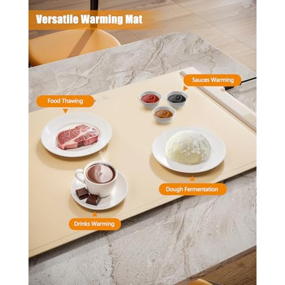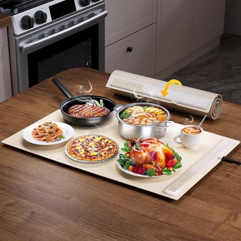 - Premium Silicone & Easy to Clean: Crafted from high-quality, nano-coated silicone, this food warmer mat is easy to clean, waterproof, and heat-resistant, ensuring it retains its shape over time; It is non-stick and odor-free, making it a practical and safe choice for your kitchen needs