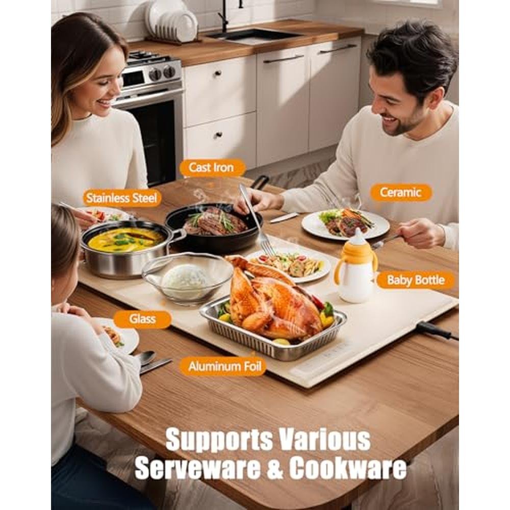 - Supports Various Serveware & Cookware: This warming trays for buffets party is easily compatible with serveware of different materials, including ceramic, stainless steel, glass, cast iron, and plastic; Its design also protects your dishes from heat, extending their lifespan