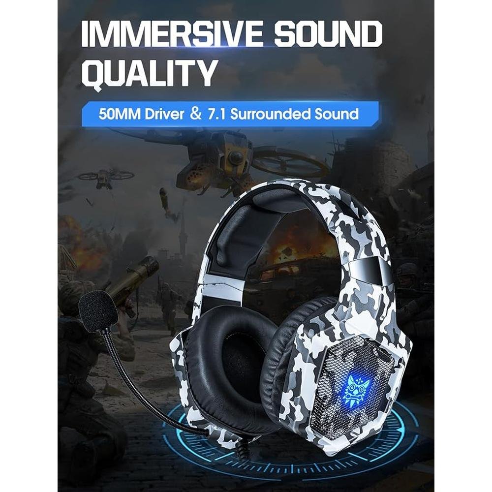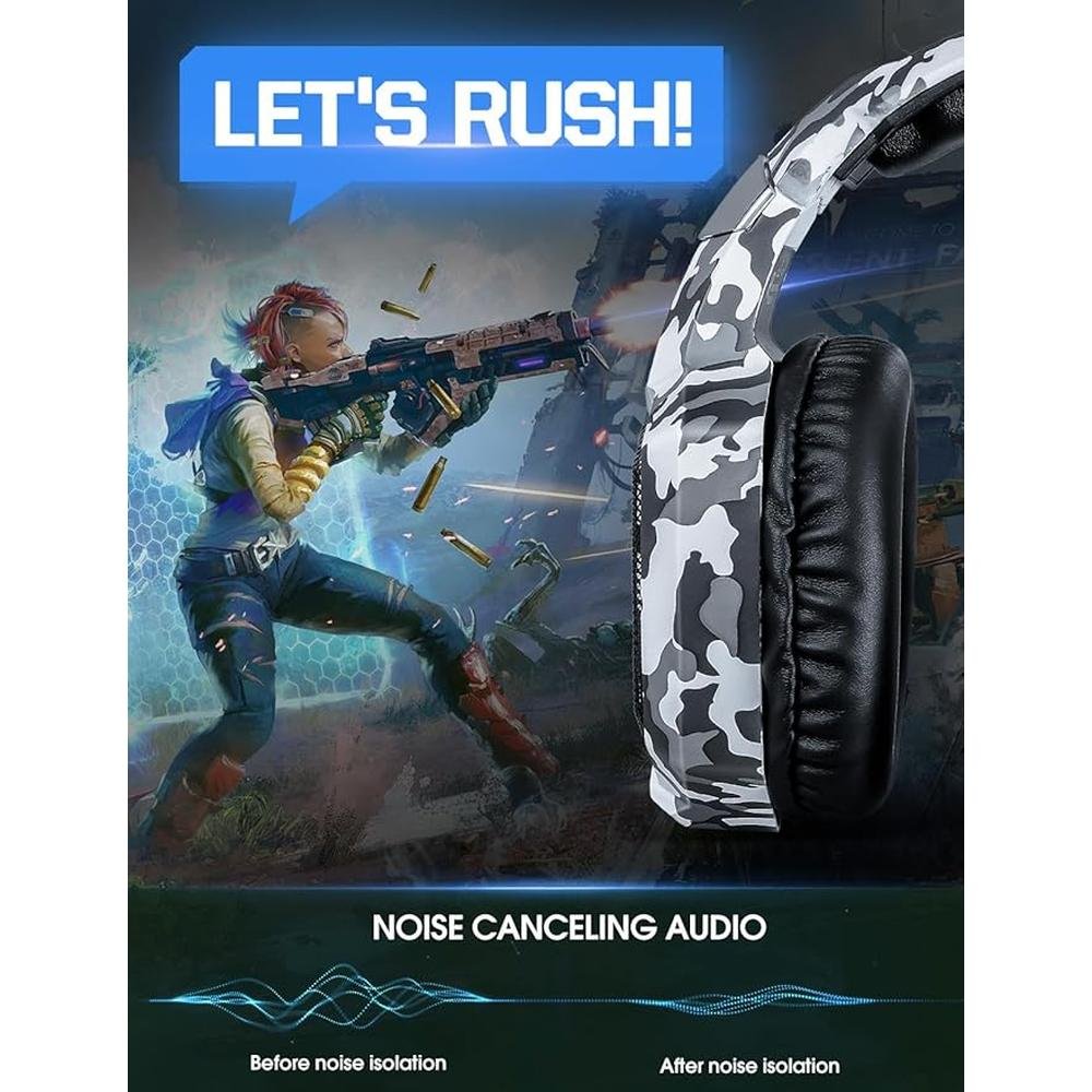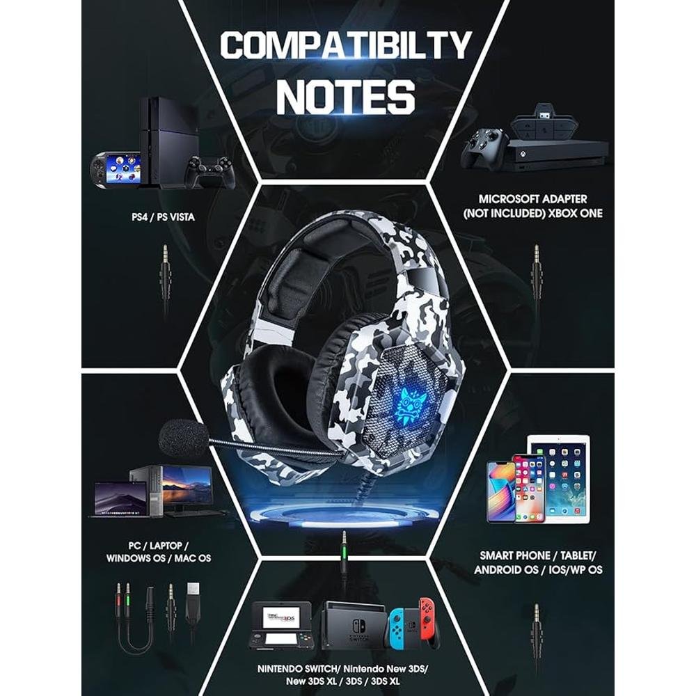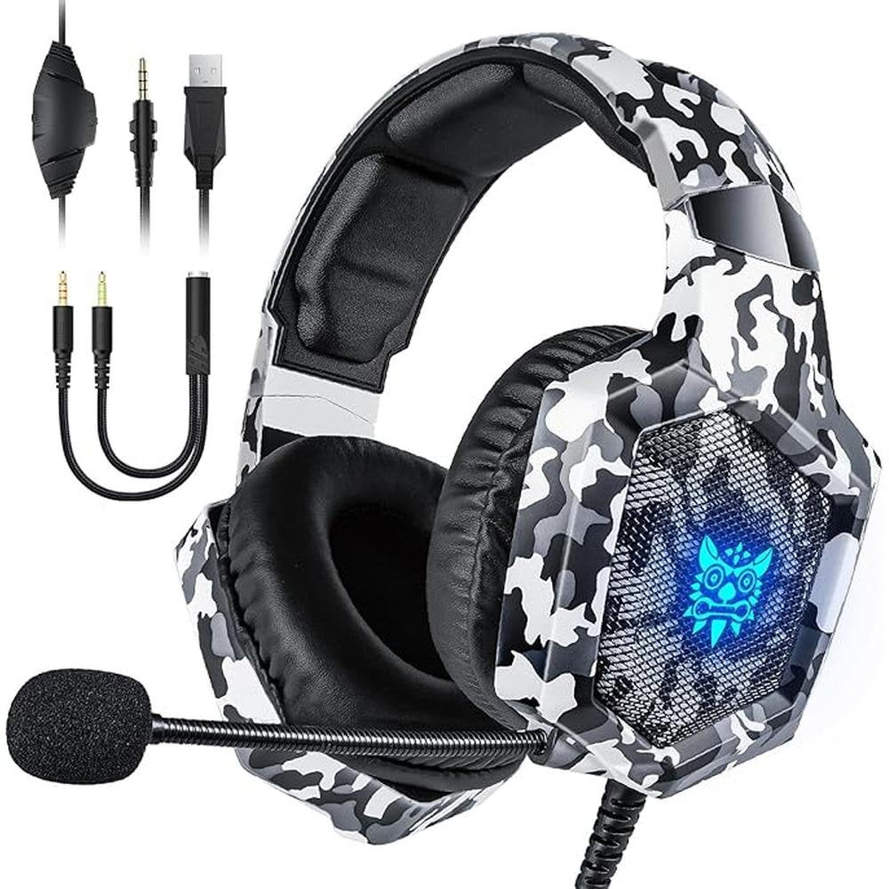 Gaming Headset with Microphone, Gaming Headphones for PS4 PS5 Xbox One PC with LED Lights, PlayStation Headset with Noise Reduction 7.1 Surround Sound Over-Ear and Wired 3.5mm Jack (White)