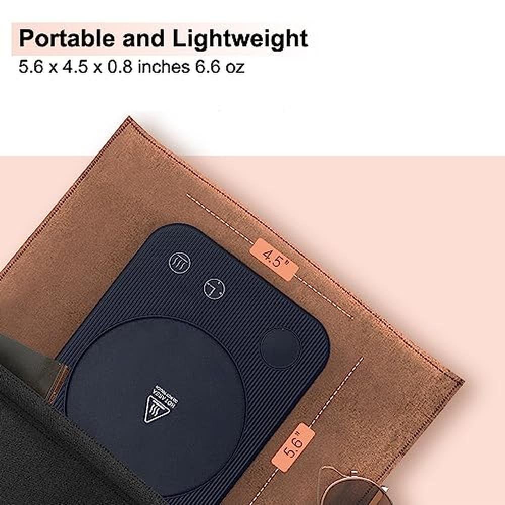 - Convenient And Compact DesignThe weight of 6.6 oz and 0.7 inches in thickness, this coffee warmer only takes up a little space. If you love hot drinks, it will be an excellent choice to prepare this mug warmer in your backpack to carry anywhere.The electric coffee warmer has 3.5" diameter heating area. It can be fit most cups, such glass cup,stainless steel cup, Ceramic cup etc.