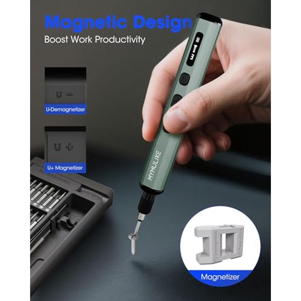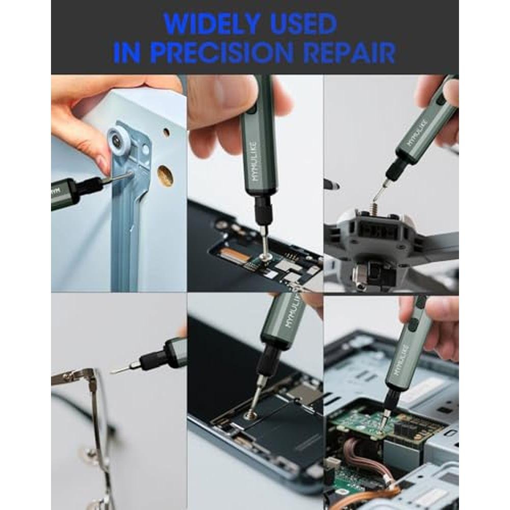 • PORTABLE DESIGNMini electric screwdriver adopts a press to pop up design. Inside neatly houses 65 precision screw drill bits and auxiliary tools, which can meet the repair needs of most electronic components, small electronic products and household appliances. The portable design of the magnetic box makes it an ideal choice for mobile repair, home repair or professional use