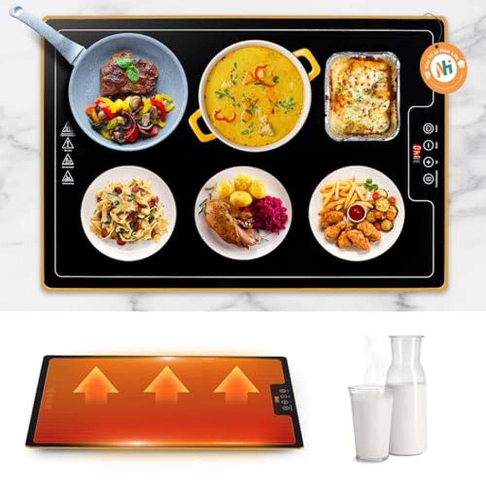 Newhai 104-284 Electric Warming Tray Temperature Adjustable Food Warming Mat with Even Heated Glass Surface, 6 Preset Modes & Timer Function, for Home, Buffets, Party, Business (24''*16'')