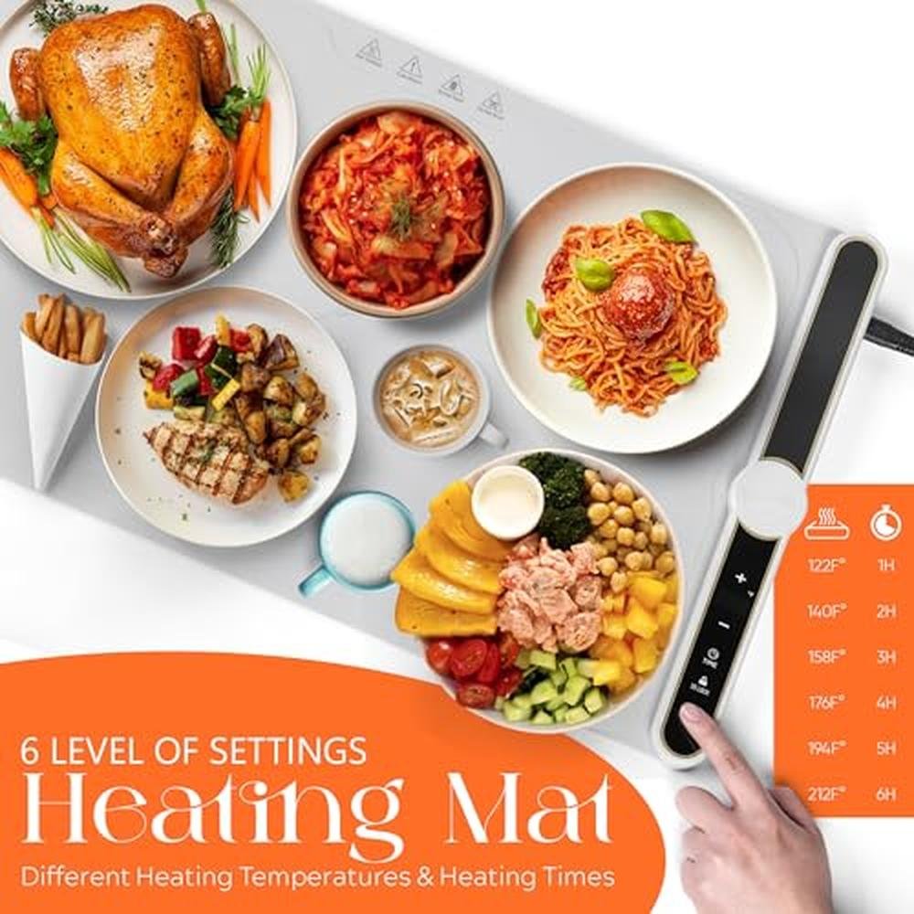 - Custom Heat & Timer Settings With 9 adjustable temperature levels ranging from 104F to 248F (40C to 120C) and 6 timer options (1 to 6 hours), this heating pad allows you to customize the warmth to your exact preference, ensuring that your food is always kept at the perfect temperature.