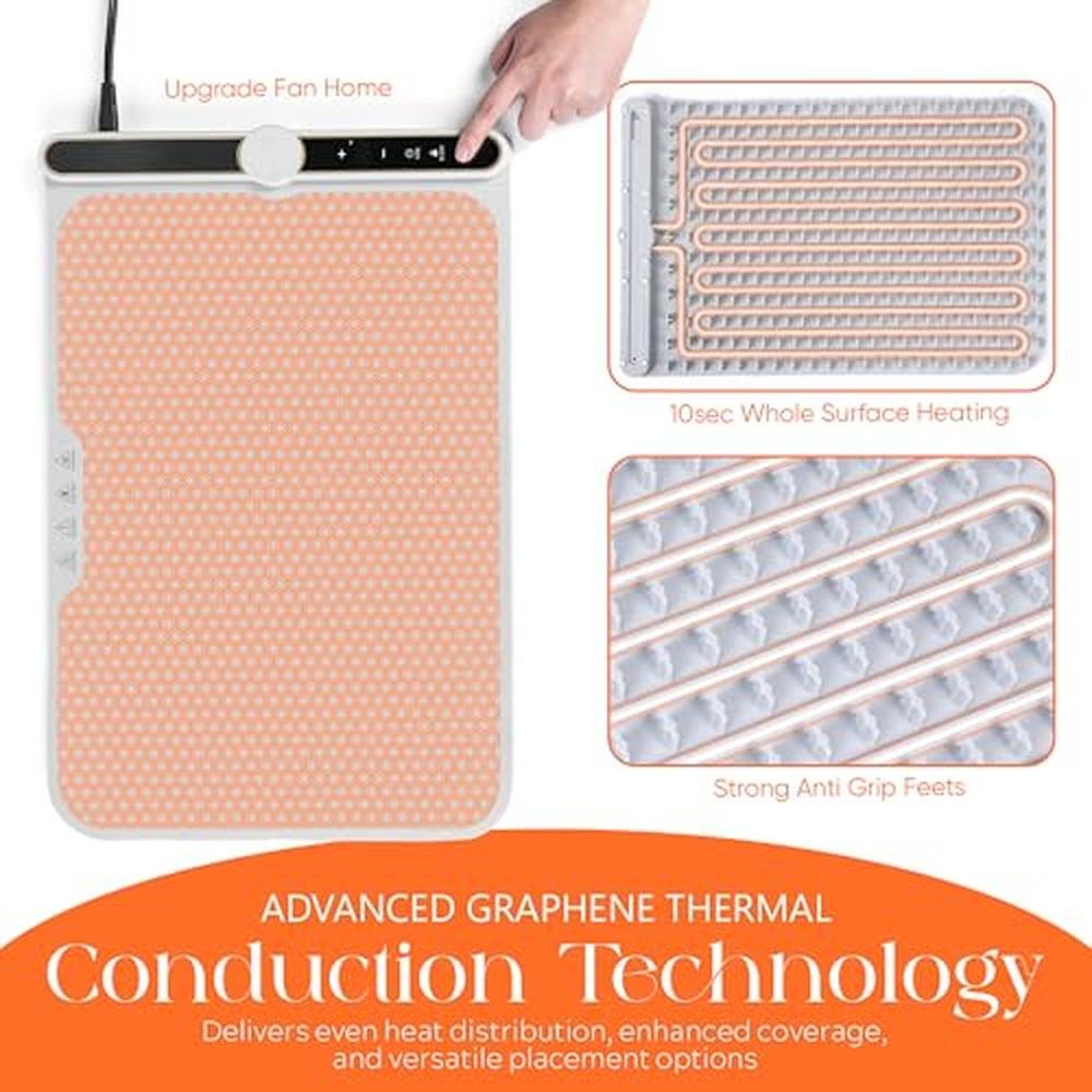 - Fast & Even HeatingEquipped with advanced graphene thermal conduction technology, the heating pad warms up in just 8 seconds, efficiently and evenly distributing heat across the surface while minimizing energy consumption for cost-effective operation.