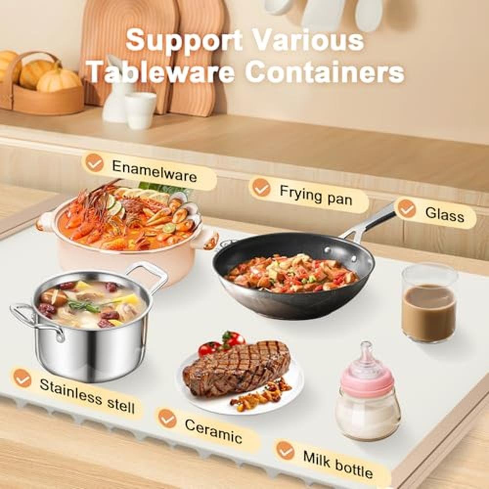• Fast Full-Surface HeatingOur food warming mat used premium silicone material, thoughtfully designed heating wire can quickly and evenly heat the entire surface, ensuring your food reaches the ideal temperature in a short time. Enjoy delicious food instantly without any waiting.