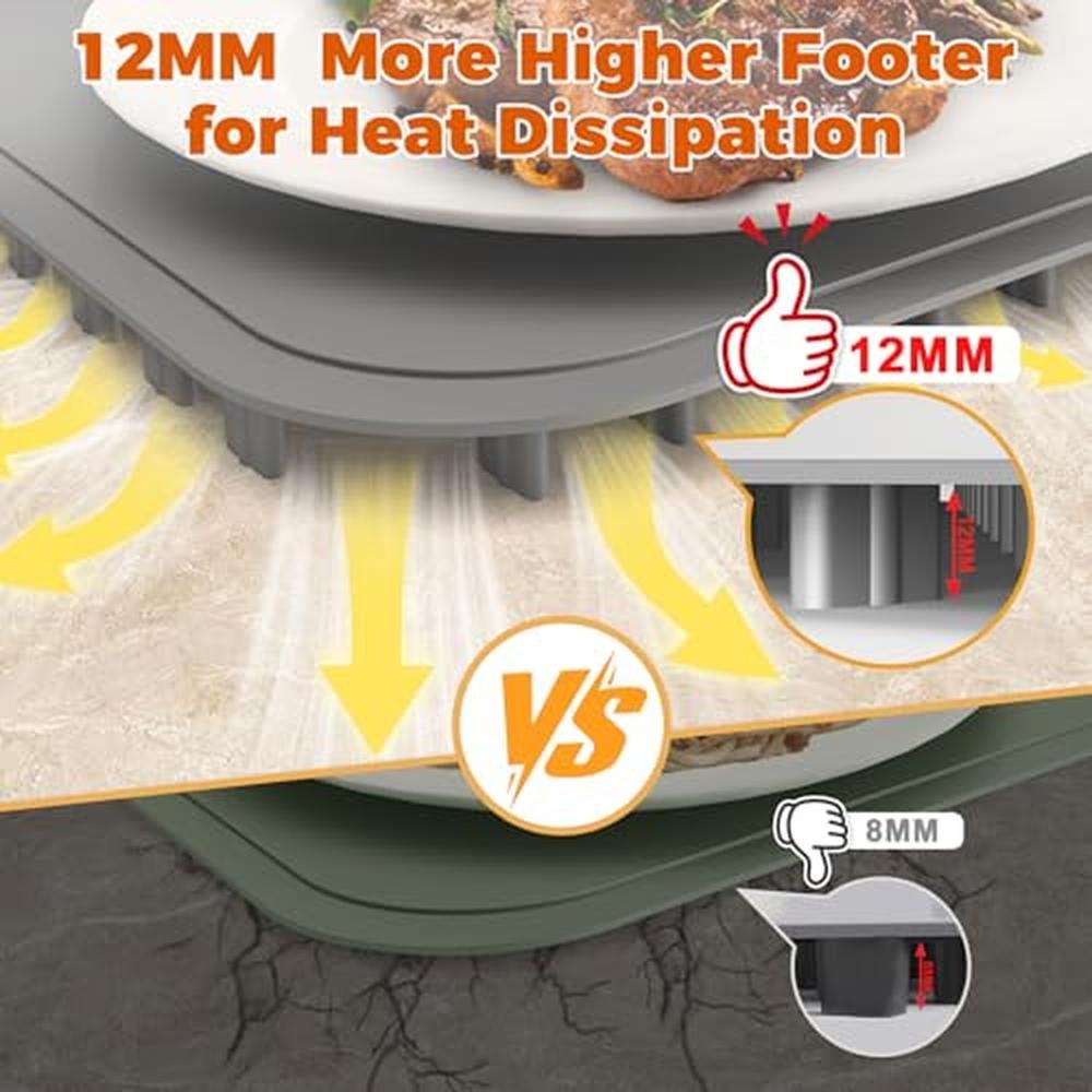- Heat Dissipation Design & Countertop Protection: Our electric food warmer incorporates an innovative non-slip heat dissipation grille design for enhanced stability. Compared to other models, we have increased both the thickness and height of the cooling pad feet to 12mm (4mm higher than others), promoting better air circulation and faster heat dissipation. This optimizes performance by preventing overheating at the base without risking damage to your countertop. Every detail is meticulously crafted to enhance user experience