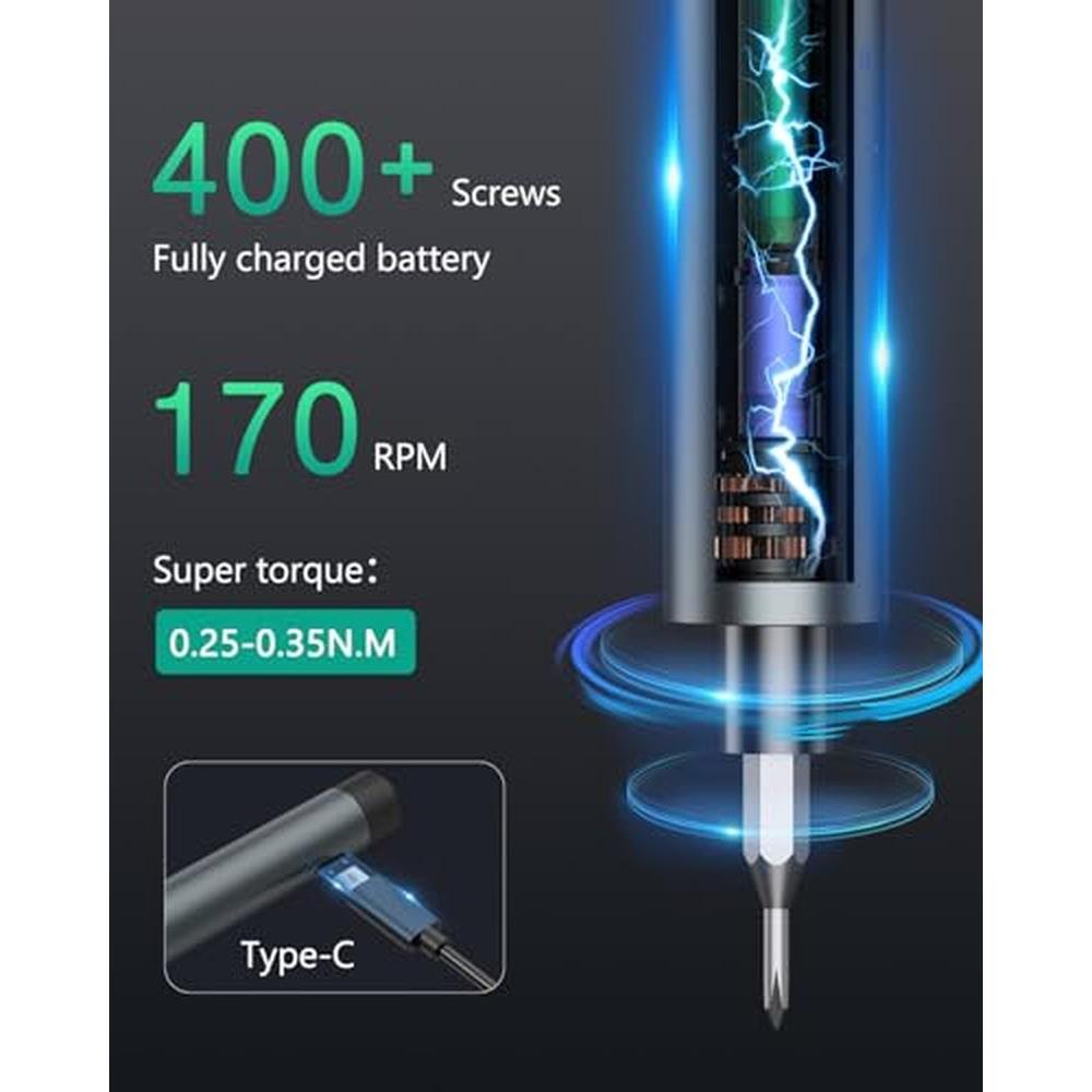 - Built-in LED Lights & Rechargeable: Features 2 built-in LED lights to illuminate dark workspaces and a Type-C charging cable for long-lasting use. A single charge lasts for 400+ screws, ensuring uninterrupted projects