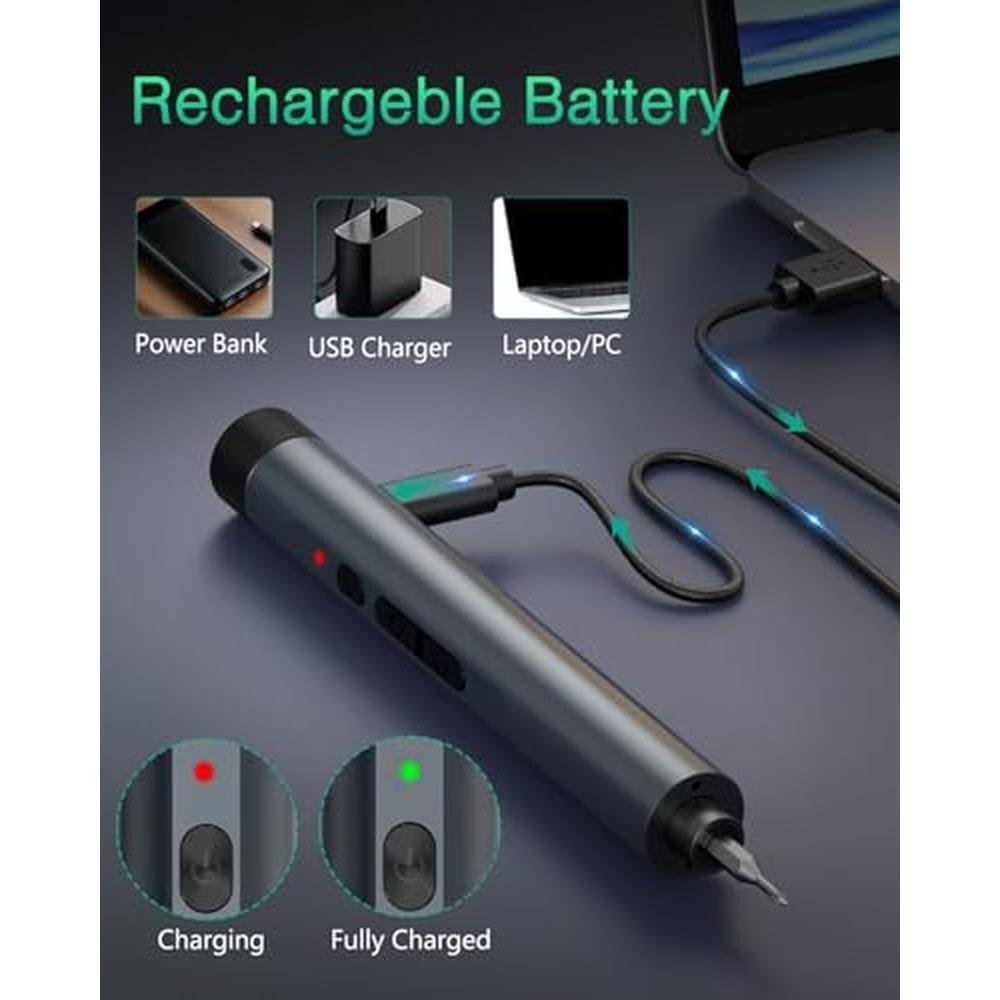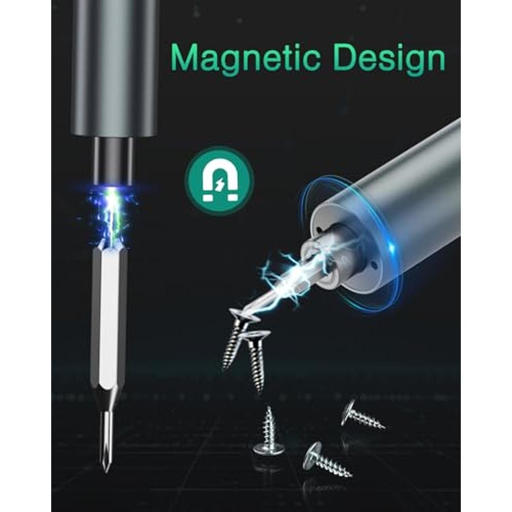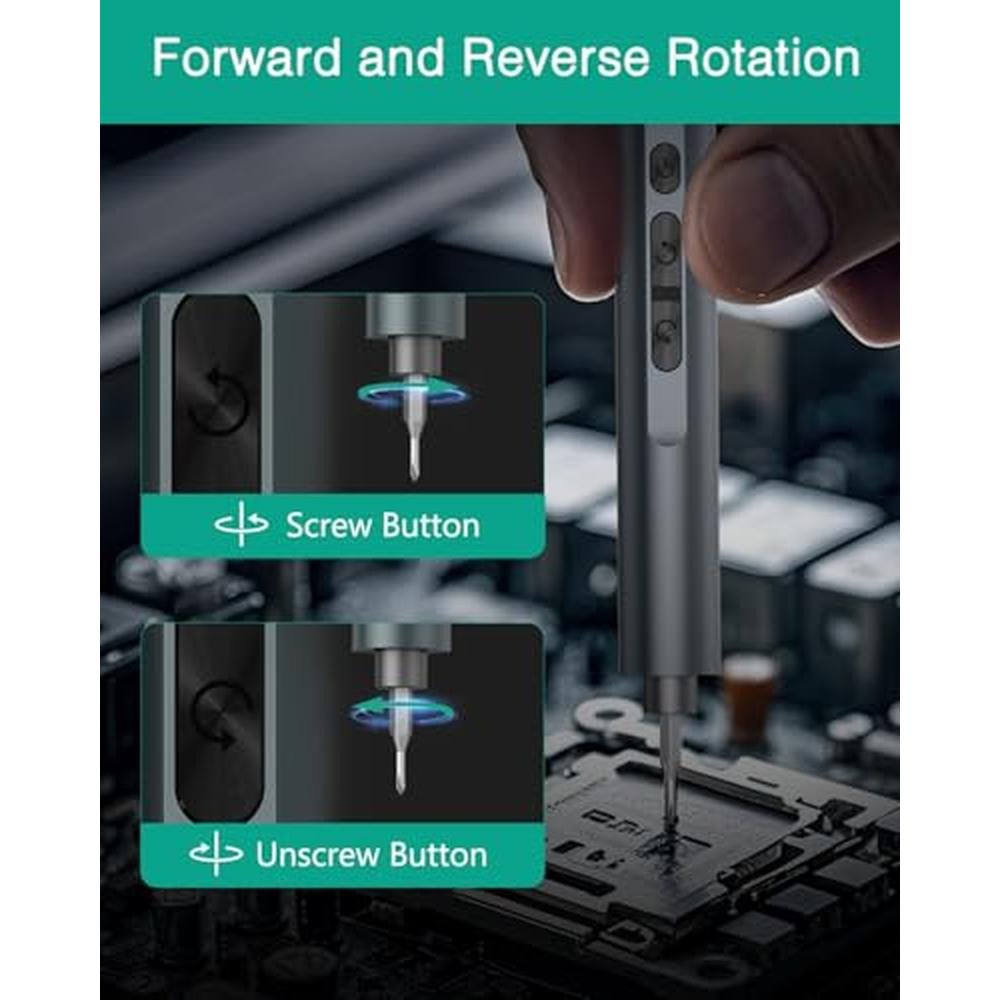 - Ergonomic & Easy Operation: Crafted with a lightweight aluminum alloy handle, this electric screwdriver offers a comfortable, non-slip grip for precise control. With only 3 intuitive buttons (ON/OFF, forward/reverse), it can be easily operated with one hand