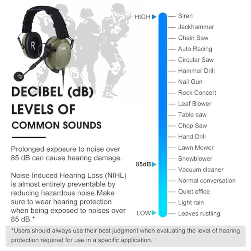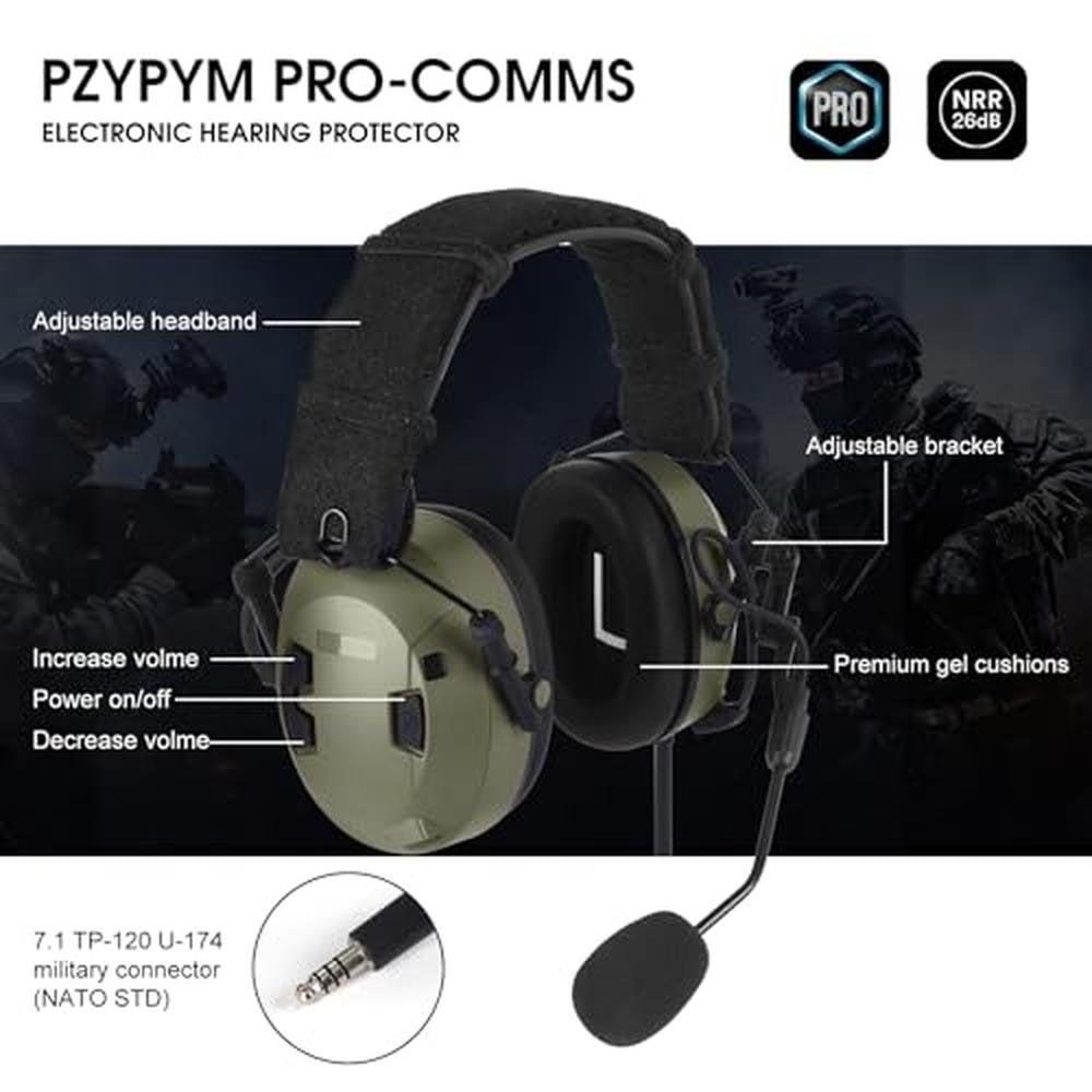 AC-536 Hearing Protection Headphone Ear Pro Pro-comms Ptt Headset NRR 26dB Noise Reduction EarPro Two Way Radio Earmuffs