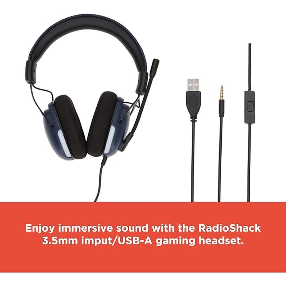 RadioShack Gaming 3.5mm and USB-A Headphones with Microphone (Dark Blue)