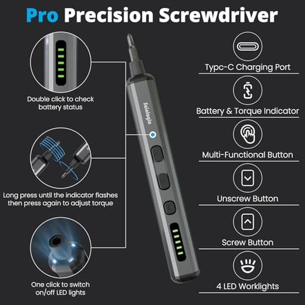 Sainlogic Electric Screwdriver, 68 in 1 Screwdriver Set, 3.7V Mini Electric screwdriver cordless 350mAh, 5 Torque Settings, 4 LED Lights, Electric Small Screwdriver Set for Phone Camera Watch