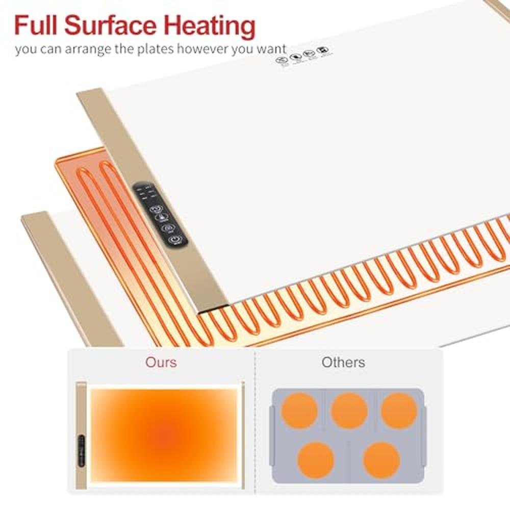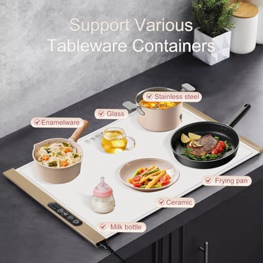 - High-Quality Food-Grade Silicone Nano Materials: Crafted from top-tier flexible silicone nano material, our electric warming tray mat offers unparalleled durability and resistance to splashes, stains, and oil. You can fold and store it effortlessly without worrying about creases or damaging the heating wires, ensuring lasting quality and performance.