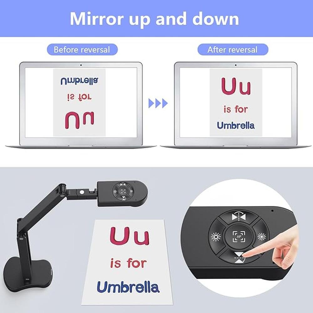 - USB Document Camera with adjustable image reversal The camera that can manually adjust image reversal. In video chat or image output, the image can be freely adjusted leftright and updown you can also manually adjust the reversed image that appears in the device to a normal image