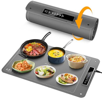 - 4-Temperature Settings & 3 Timer OptionsBenefit from four adjustable temperature settings (104F, 140F, 176F, 212F) to cater to a range of food warming requirements. Plus, our food warming pad comes with a 4-speed timer function (1-3-5-6 hours) to maintain food warmth and preserve freshness. Suitable for both warming and heating, it makes your dining experience more enjoyable.