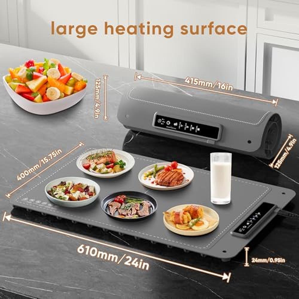 Warming Mat for Food, Aylion Full Surface Heating Electric Warming Tray with Child Lock, 4 Temperature Control & Timer, Silicone Food Warmers for Parties Buffets, Home, Travel-24x16 in (Dark Gray)