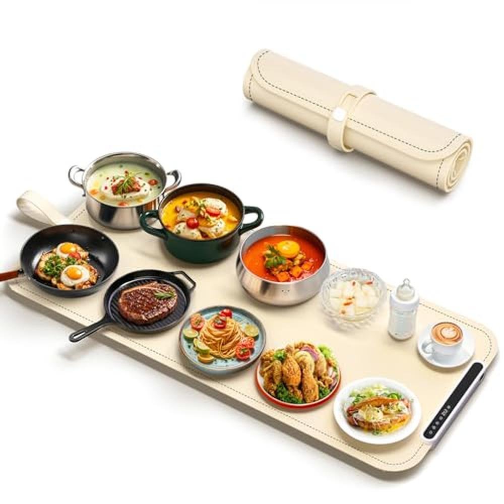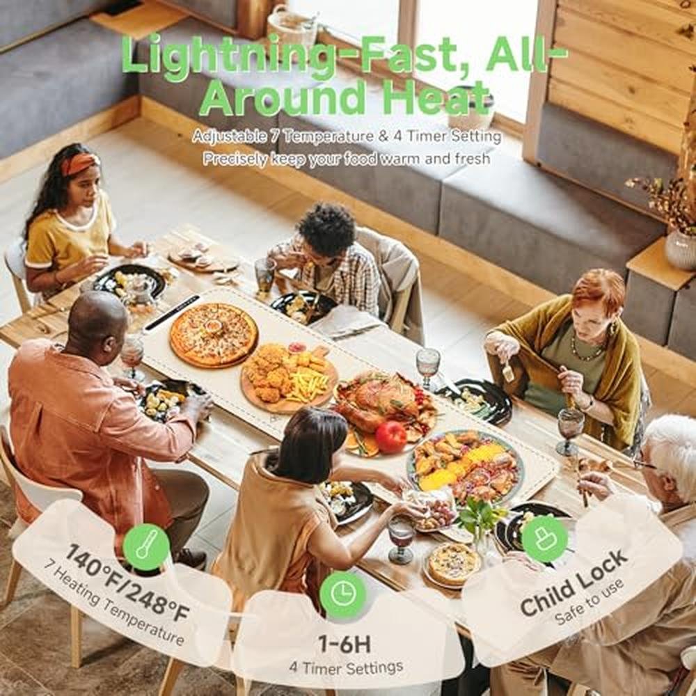 Warming Mat for Food - Electric Warming Tray, XXL(36"x16") Food Warmer Mat with Fast Full Surface Heating, Silicone Heating Mat for Party Buffet, Great Gift for Women, Hosts, New Homeowners (Beige)