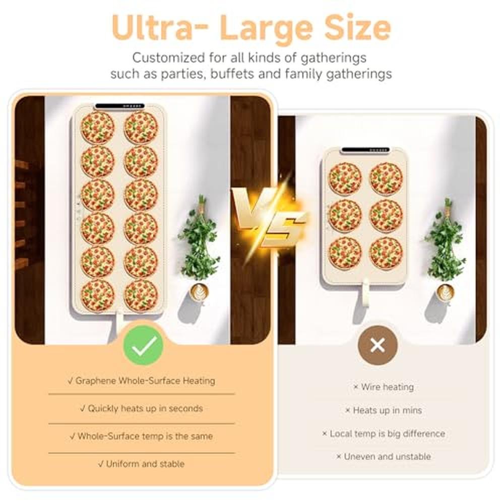 - Fast & Even Heating: This 36"x16" food warming mat keeps dishes uniformly warm