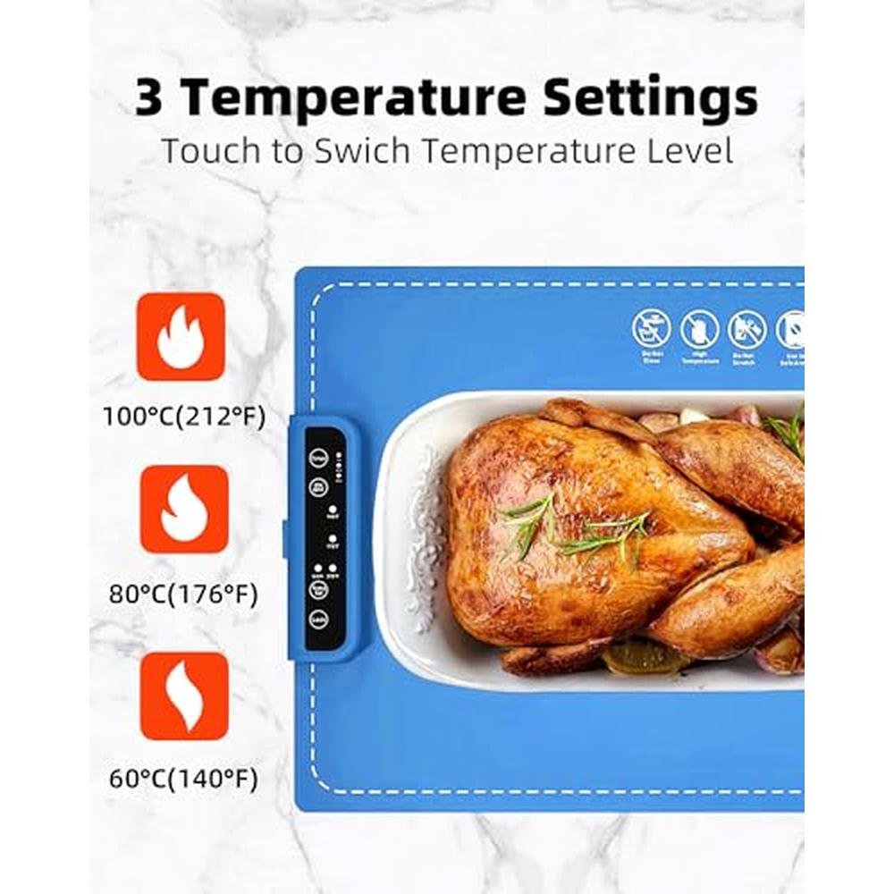 warming mat for food,Extra Large Electric Food Warming Mat & Tray - Fast Heating in 10s, 3-Level Temp Control, 4H Auto Shut-Off, Silicone Roll-Up Design for Buffets, Parties, Countertop Use