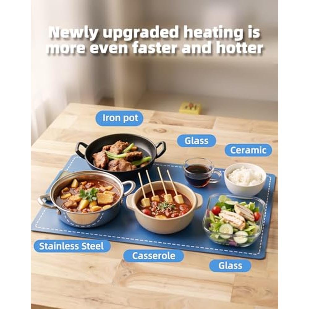 • Ultra-Fast Heating & Even Warmth: This electric food warming mat heats up in just 10 seconds! Perfect for warming trays for buffets, parties, or daily meals. Advanced double NTC temperature control ensures even heat distribution across the extra-large surface, compatible with glass, ceramic, and stainless steel cookware.