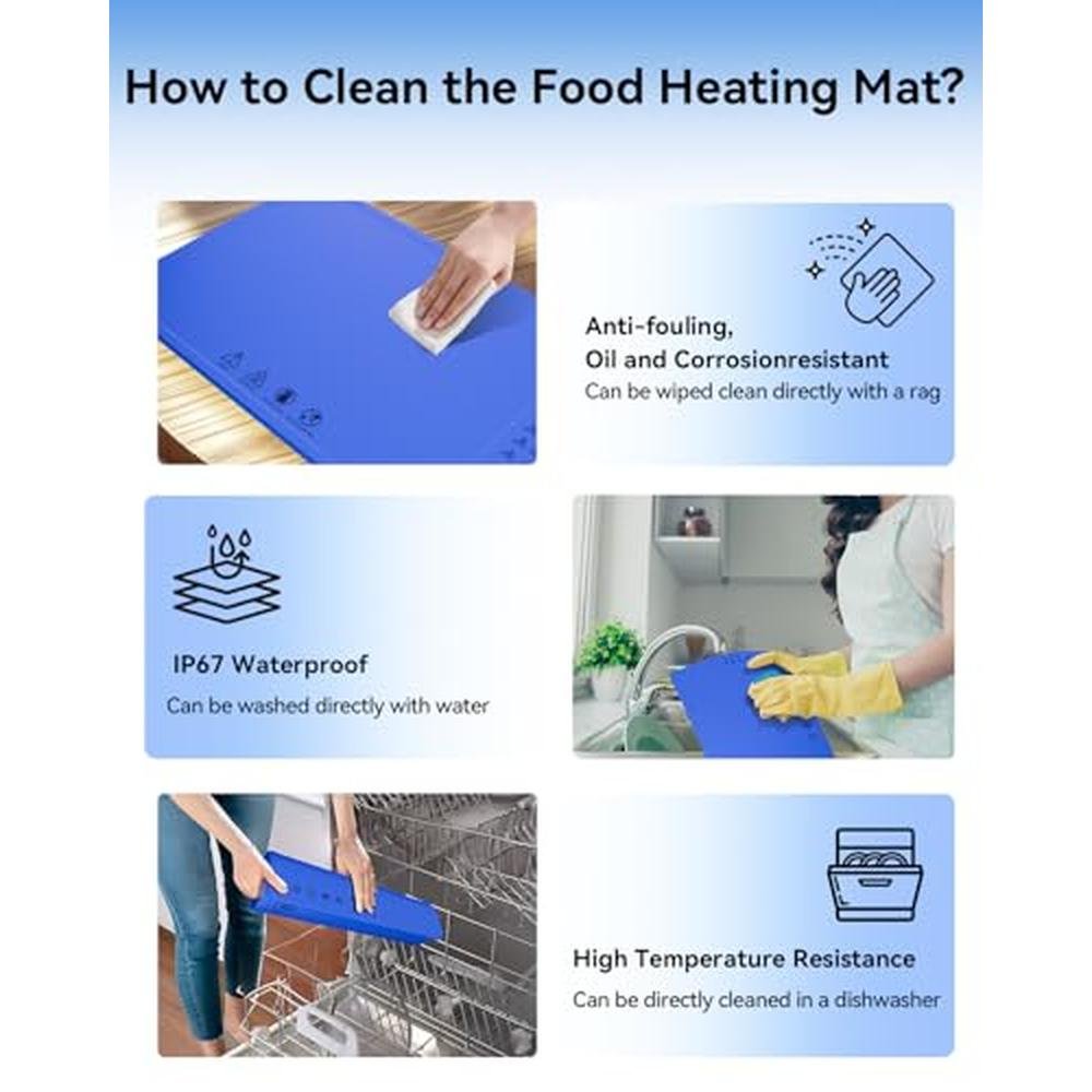 • IP67 and Silicone Material: This warming mat is made of high quality premium food grade silicone material, which is oil-proof, corrosion-resistant, soft, durable and easy to fold. It is equipped with a storage bag for easy storage and carrying, saving kitchen space. Upgraded IP67 waterproof, you can wipe it with a cleaning cloth, or you can easily wash it under the water, or put it in the dishwasher for cleaning.